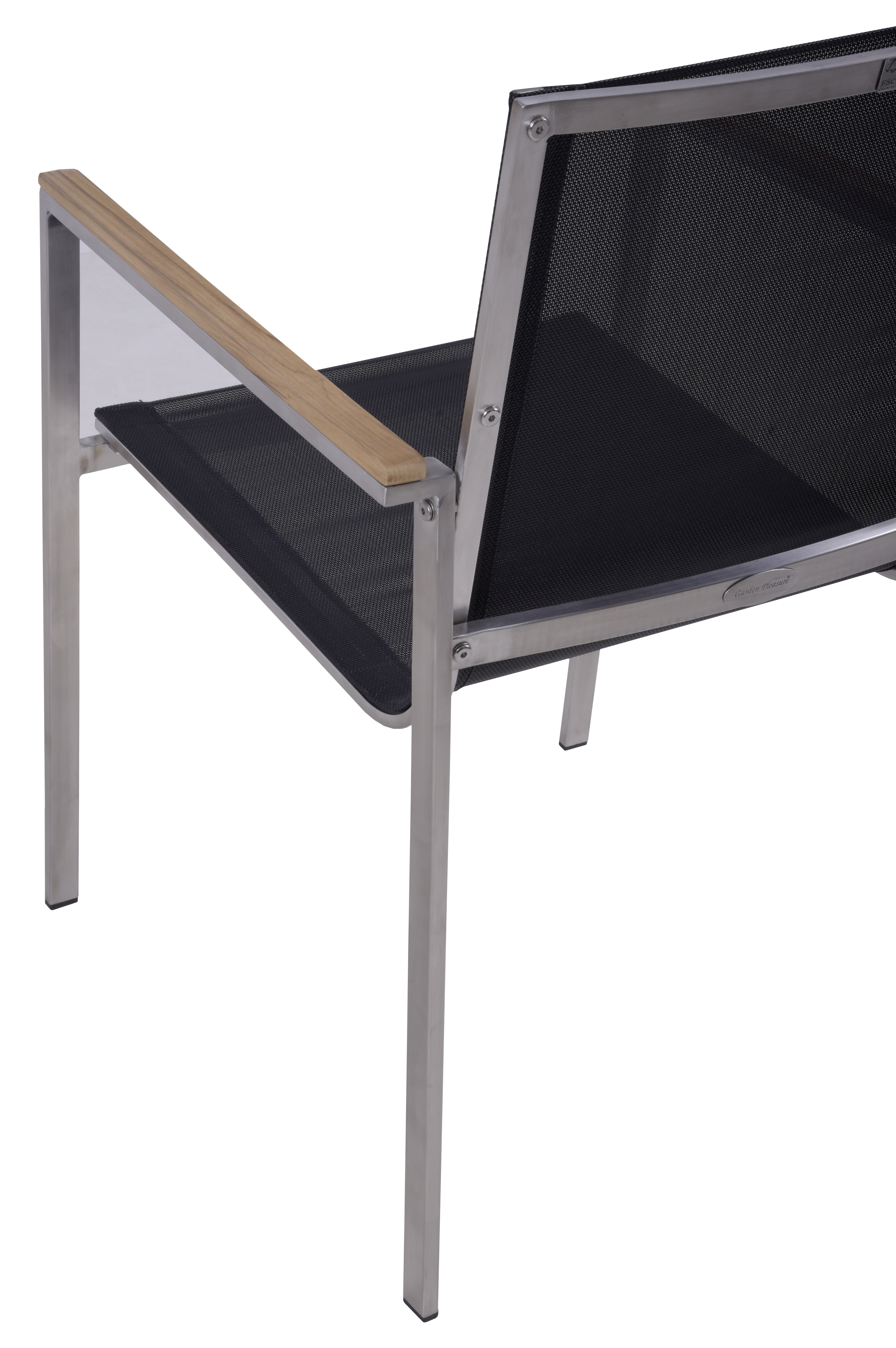 Edelstahl 304 gebürstet / Teak FSC 100%, 1 × Tisch 304943 | 6 × Stapelstuhl 304941