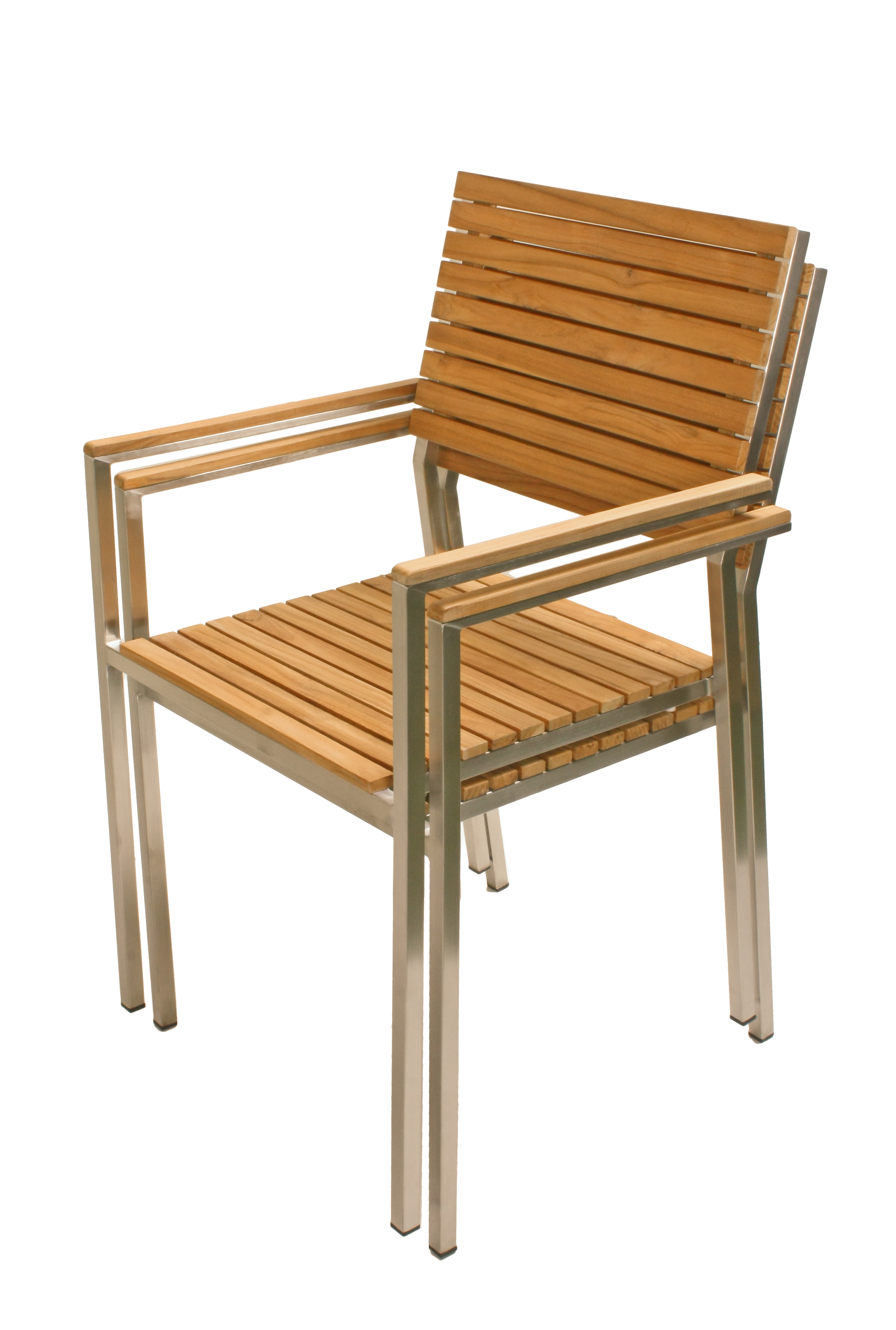 Edelstahl 304 gebürstet / Teak FSC 100%, 1 × Tisch 304943 | 4 × Stapelstühle 304768