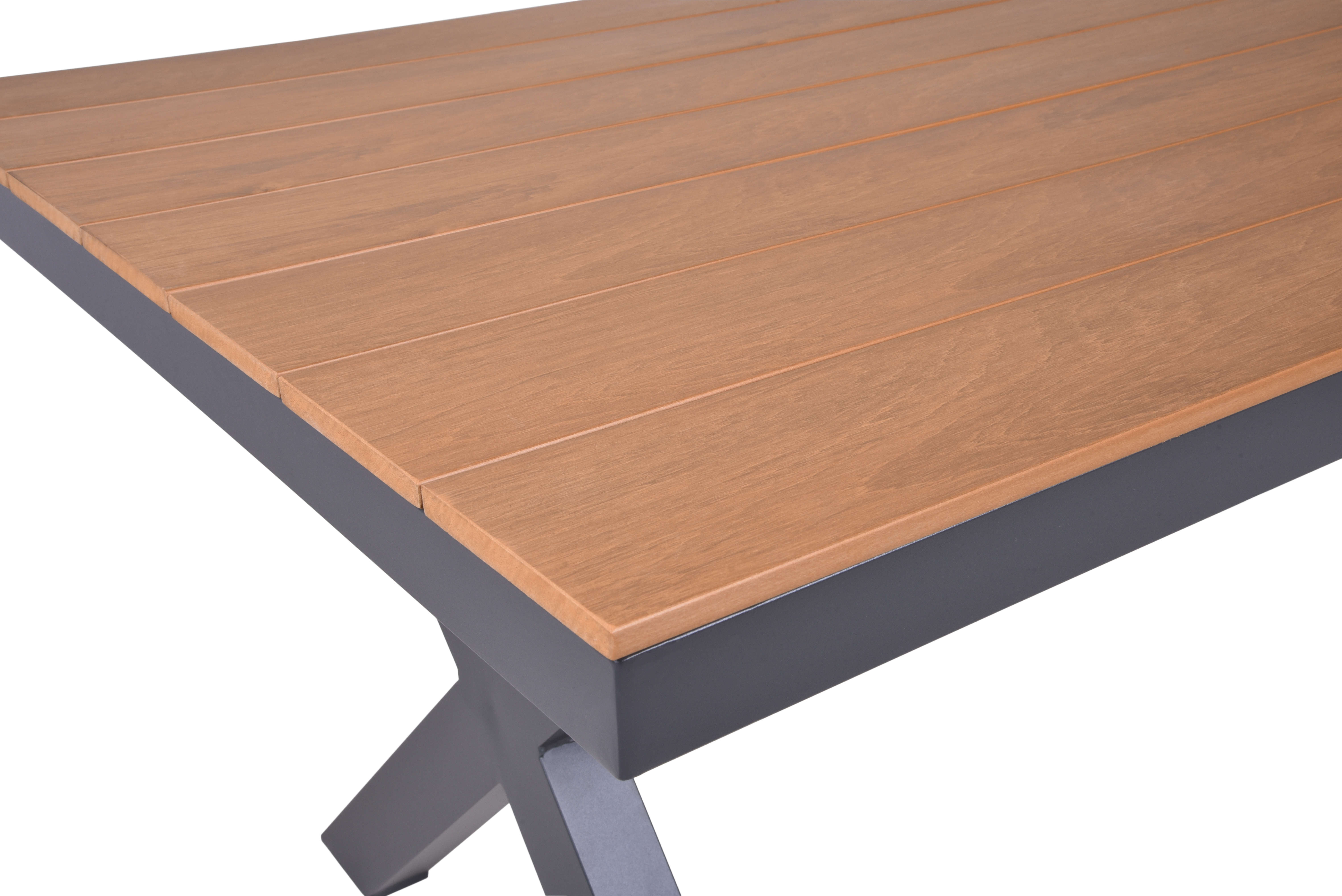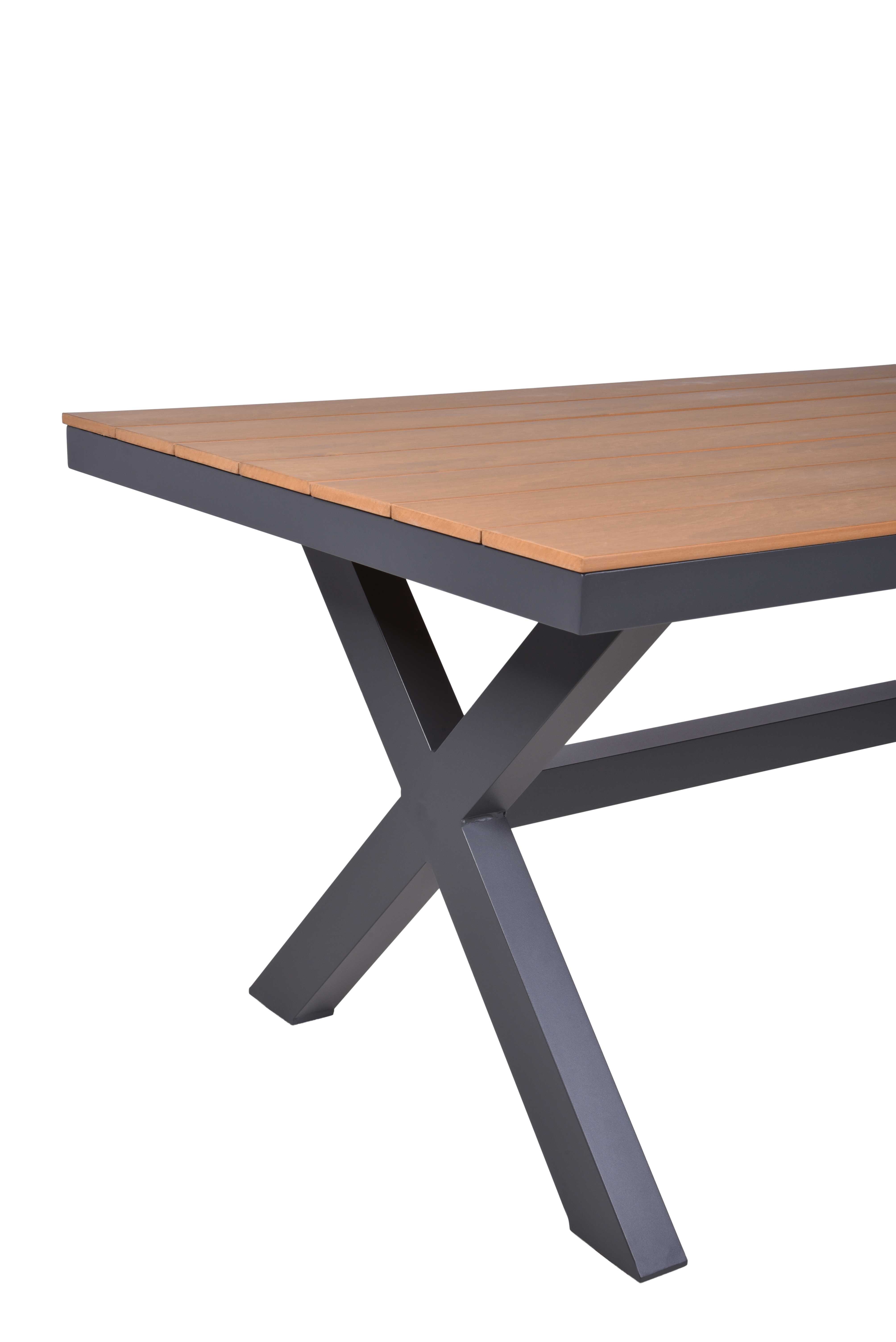 Der Tisch SILEA überzeugt durch eine Kombination aus pulverbeschichtetem Aluminium und einem Nonwood-Material in Holzoptik. Das elegante Design in Anthrazit eignet sich hervorragend für moderne und funktionale Outdoor-Bereiche. Der Tisch bietet eine langlebige und pflegeleichte Oberfläche und ist eine ideale Wahl für Garten oder Terrasse.