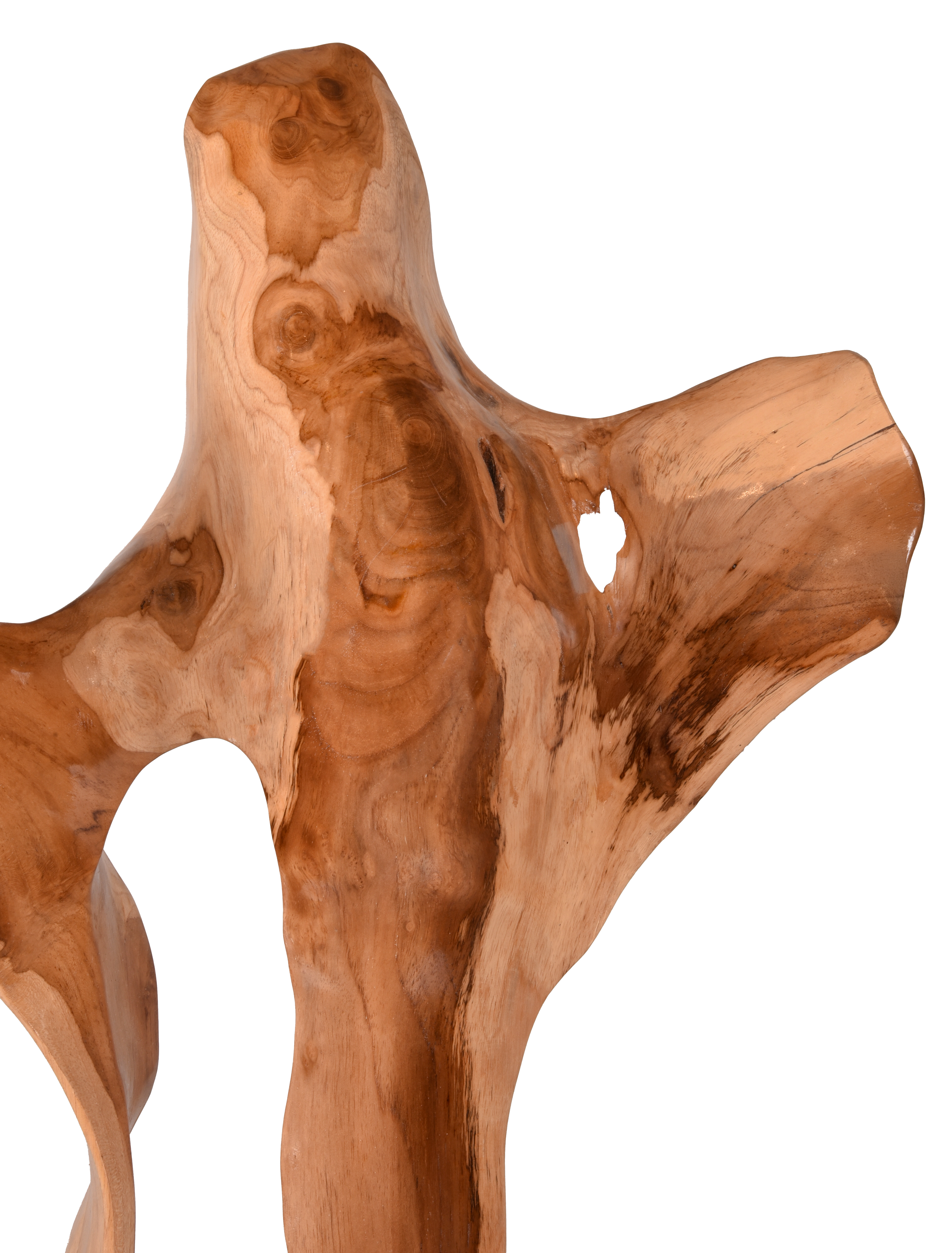 Mit der Skulptur INÉS bringen Sie ein Stück Natur in Ihr Zuhause und setzen stilvolle Akzente, die Ihre Einrichtung aufwerten. Dieses handgefertigte Unikat spiegelt die Schönheit und Vielfalt des Teakholzes wider und ist somit ein besonderes Highlight in Ihrer Dekoration.
