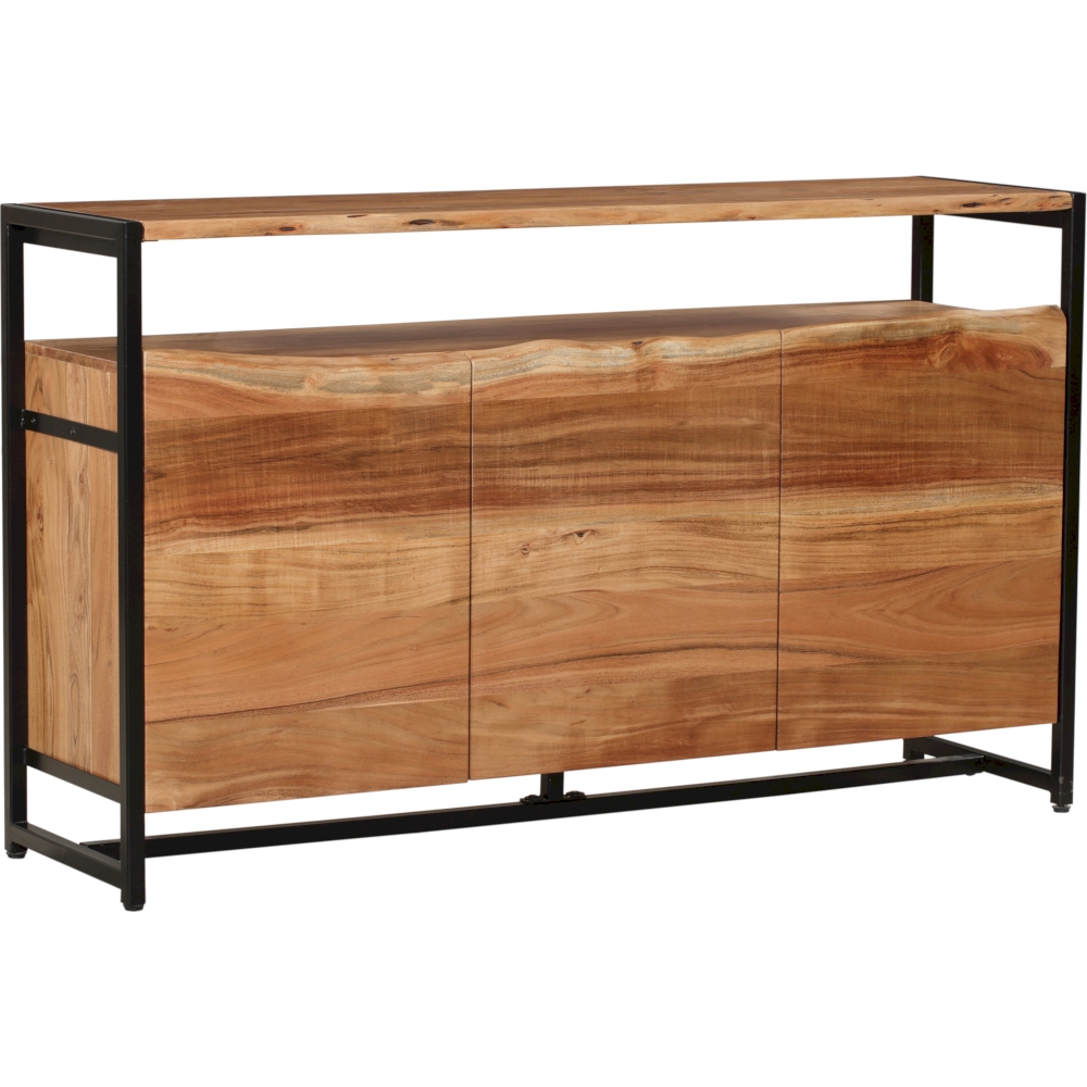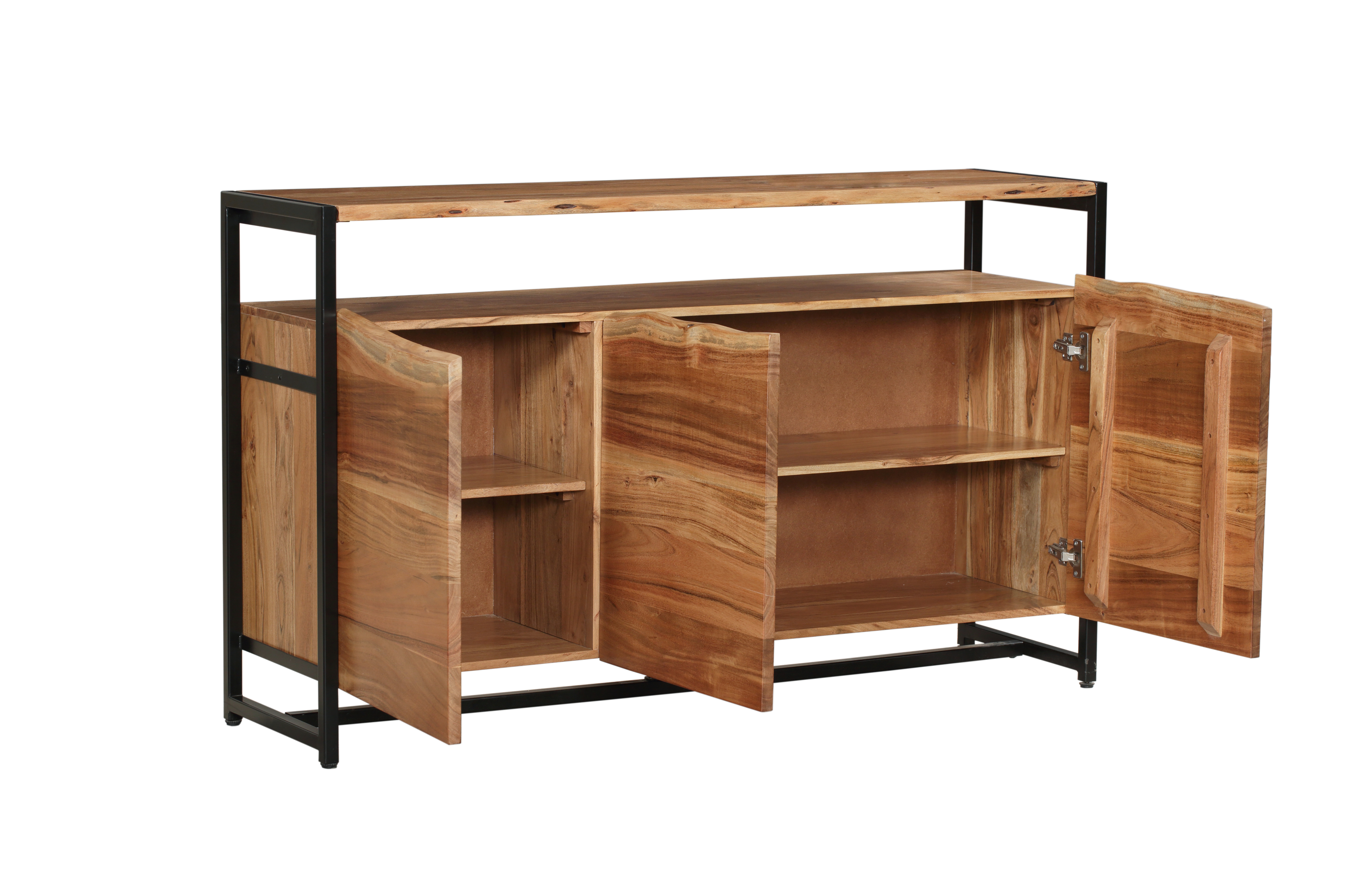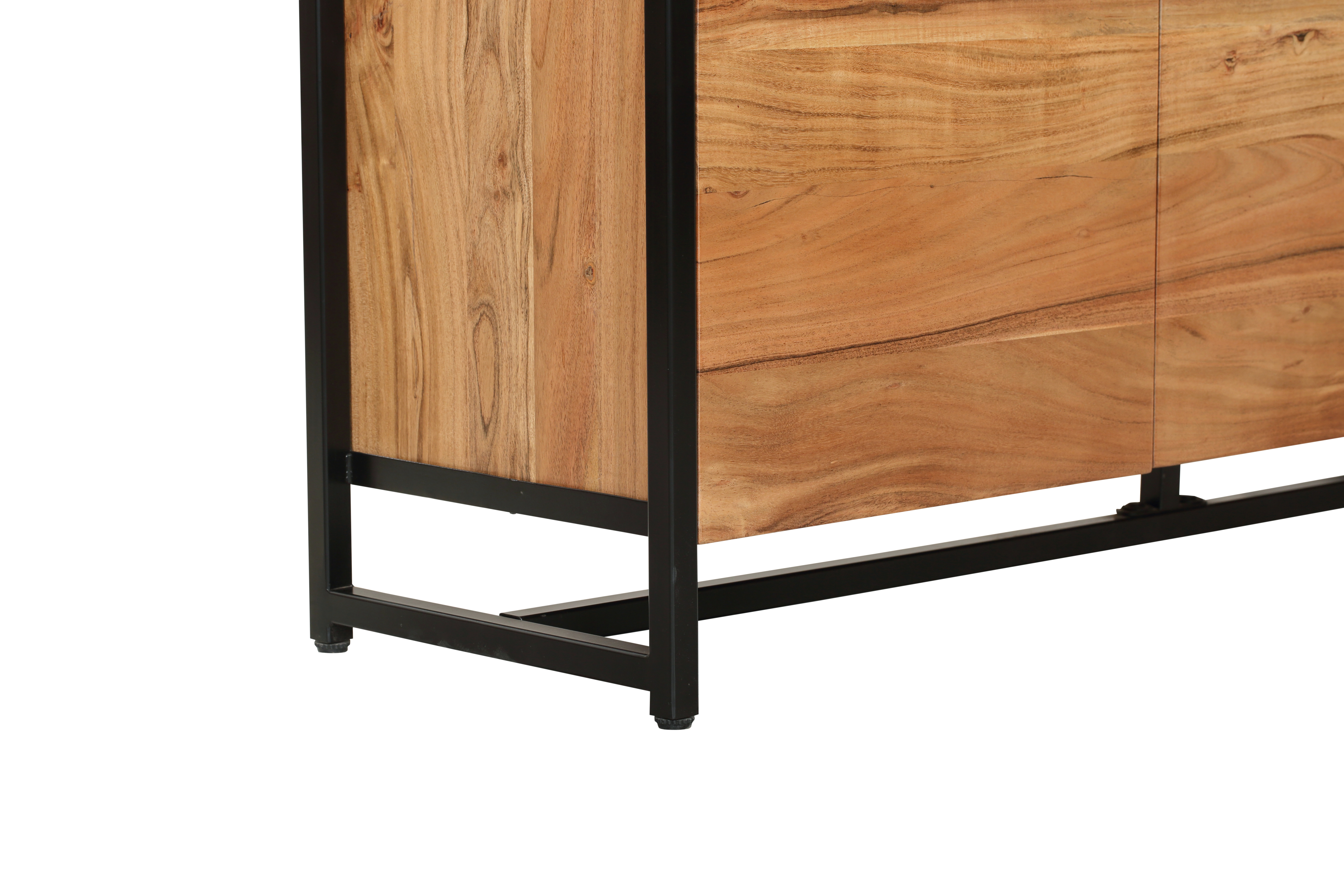 Das Sideboard MALA besticht durch eine Kombination aus Akazienholz und schwarzem, pulverbeschichtetem Eisen. Mit seinem natürlichen Holzfinish und der robusten Stahlstruktur eignet es sich ideal als funktionales und stilvolles Möbelstück für verschiedene Wohnräume. Die schlichte Eleganz und die hohe Qualität der Materialien machen das Sideboard zu einem vielseitigen Highlight in Ihrem Zuhause.