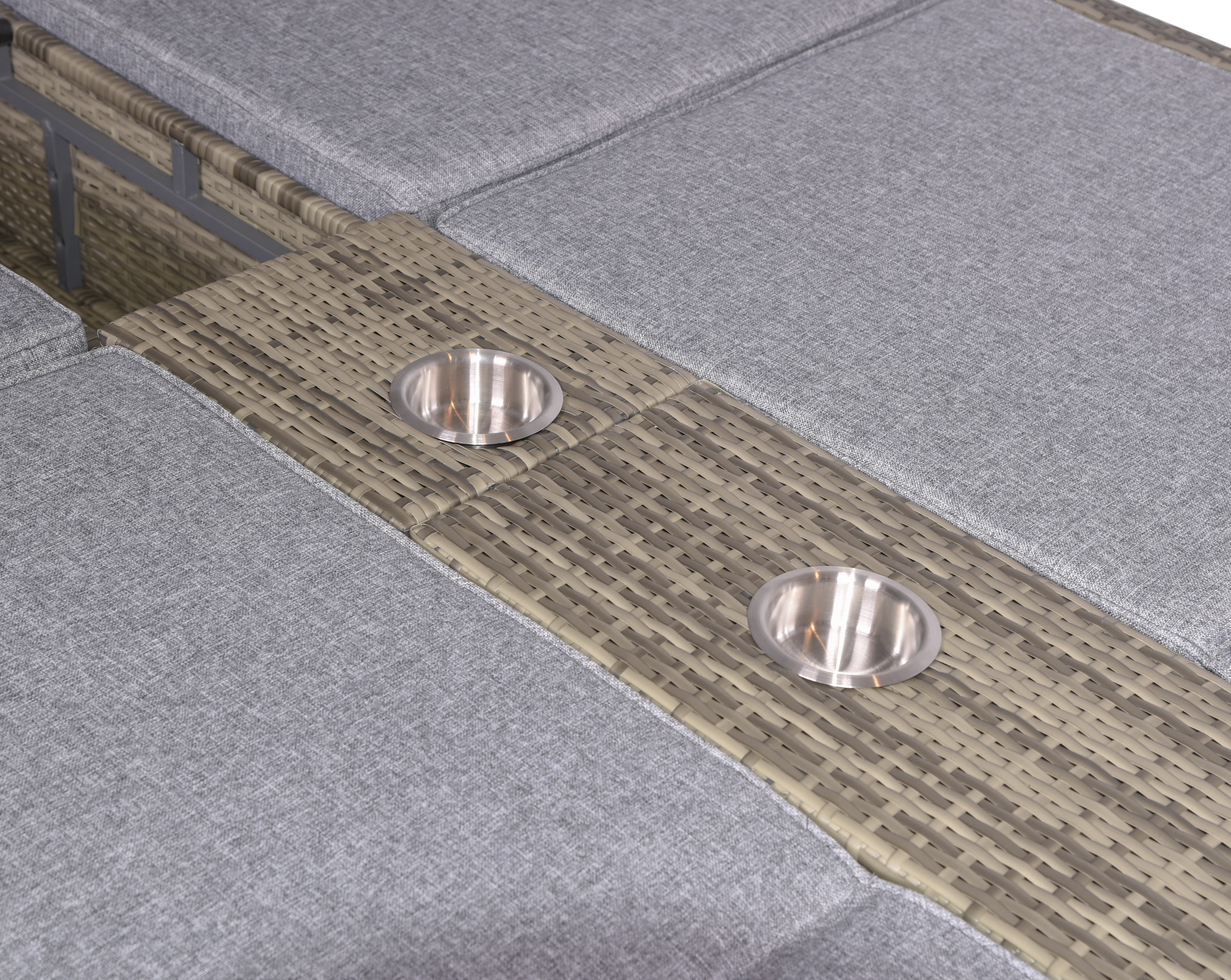 Entspannen Sie zu zweit auf der Doppelliege PESCARA – modern, bequem und perfekt für Ihren Garten oder die Terrasse. Der robuste, pulverbeschichtete Stahlrahmen und das graue Polyethylen-Geflecht sorgen für Stabilität und eine schicke Optik, die zu jedem Outdoor-Bereich passt.