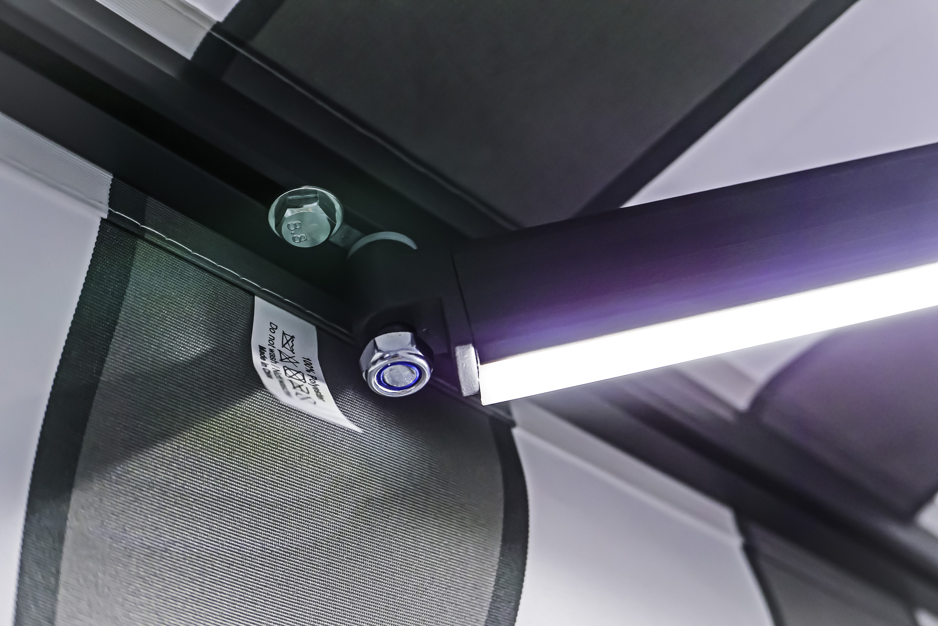 Elektrische Gelenkarmmarkise 295x200 cm, mit LED Beleuchtung, motorisiert, hellgrau-weiß gestreift