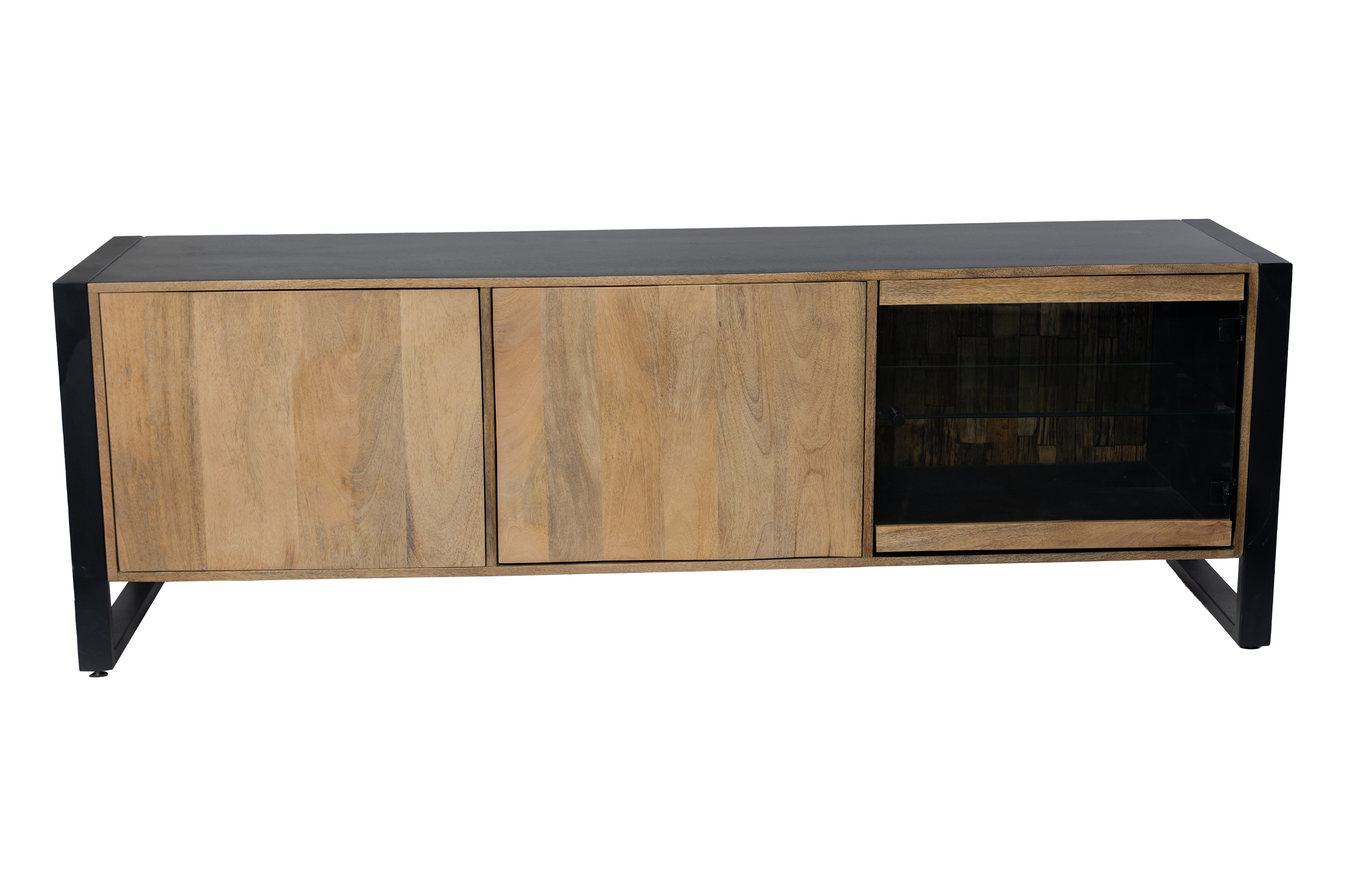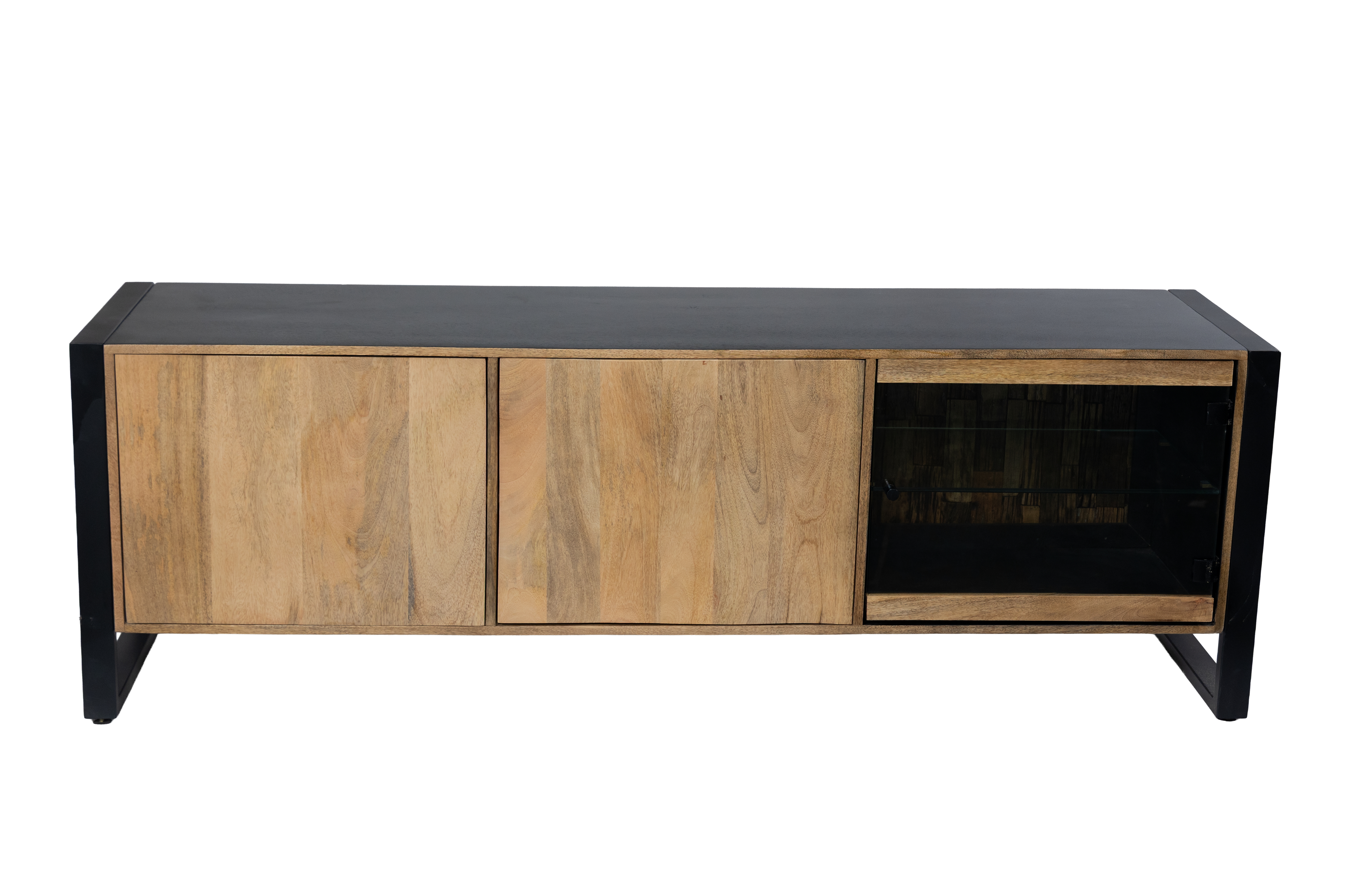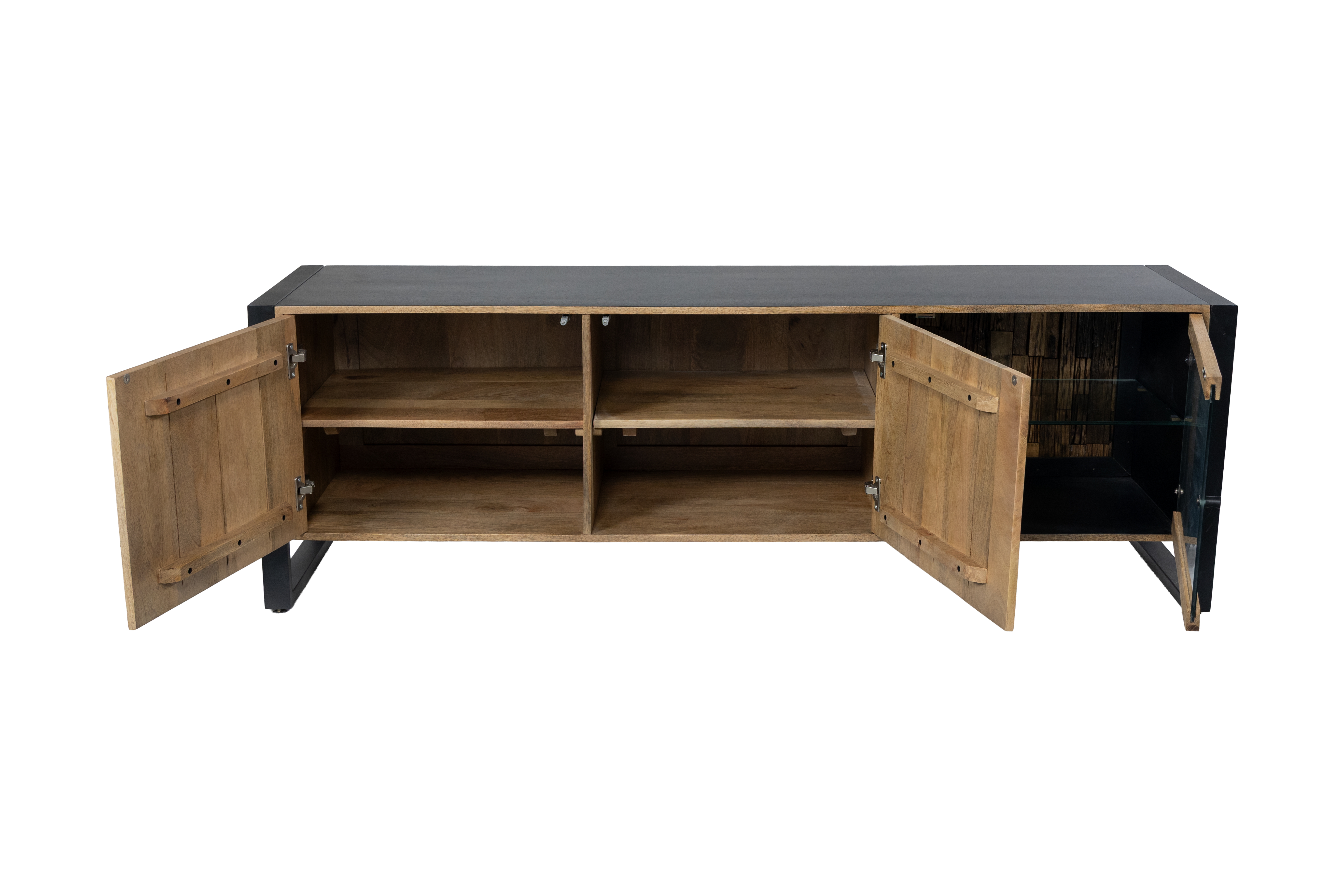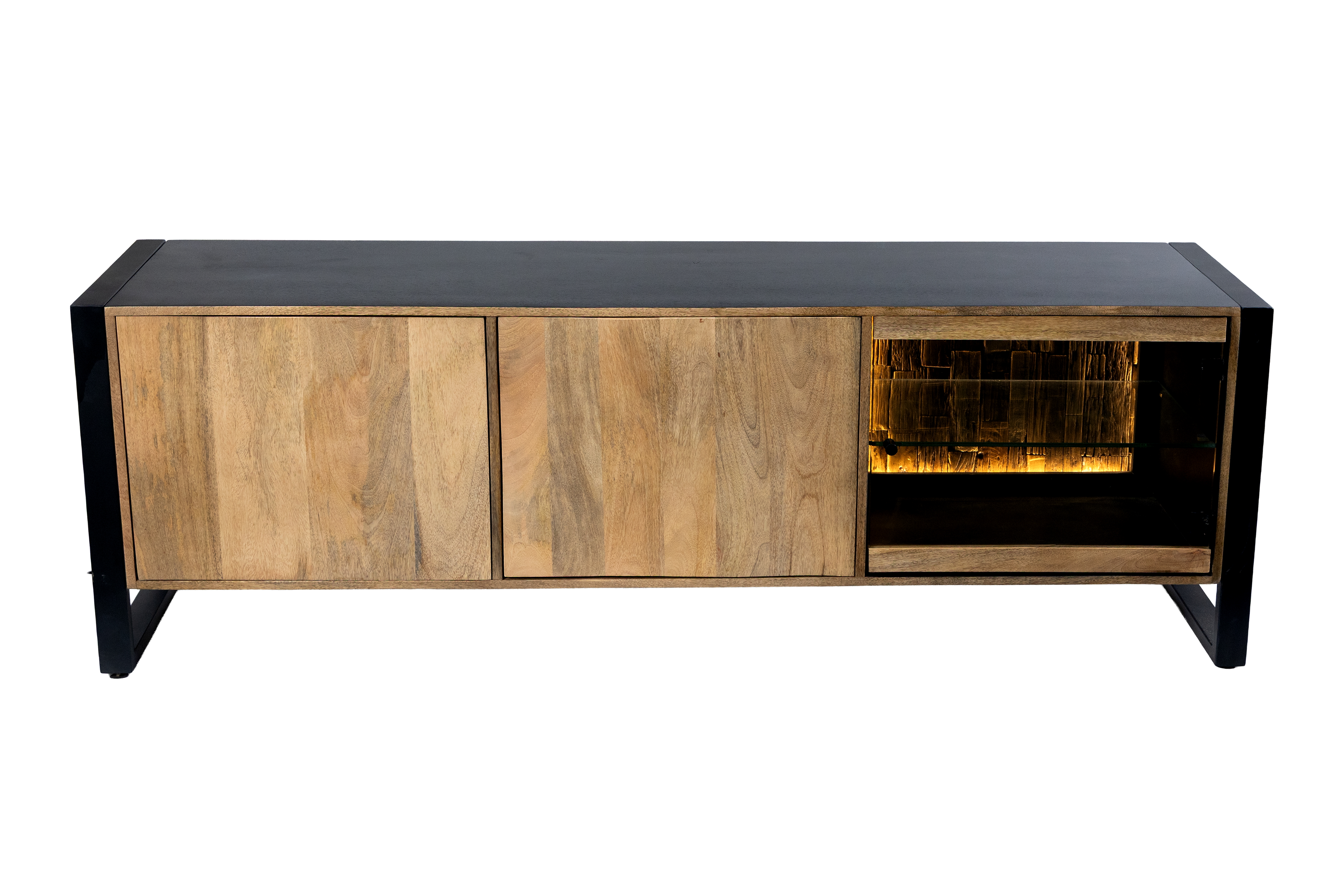 Holz: Mango , Oberfläche: lackiert , Farbe: Schwarz Matt, Honig Glas / Keramik: Glass Tür , Farbe: Natural