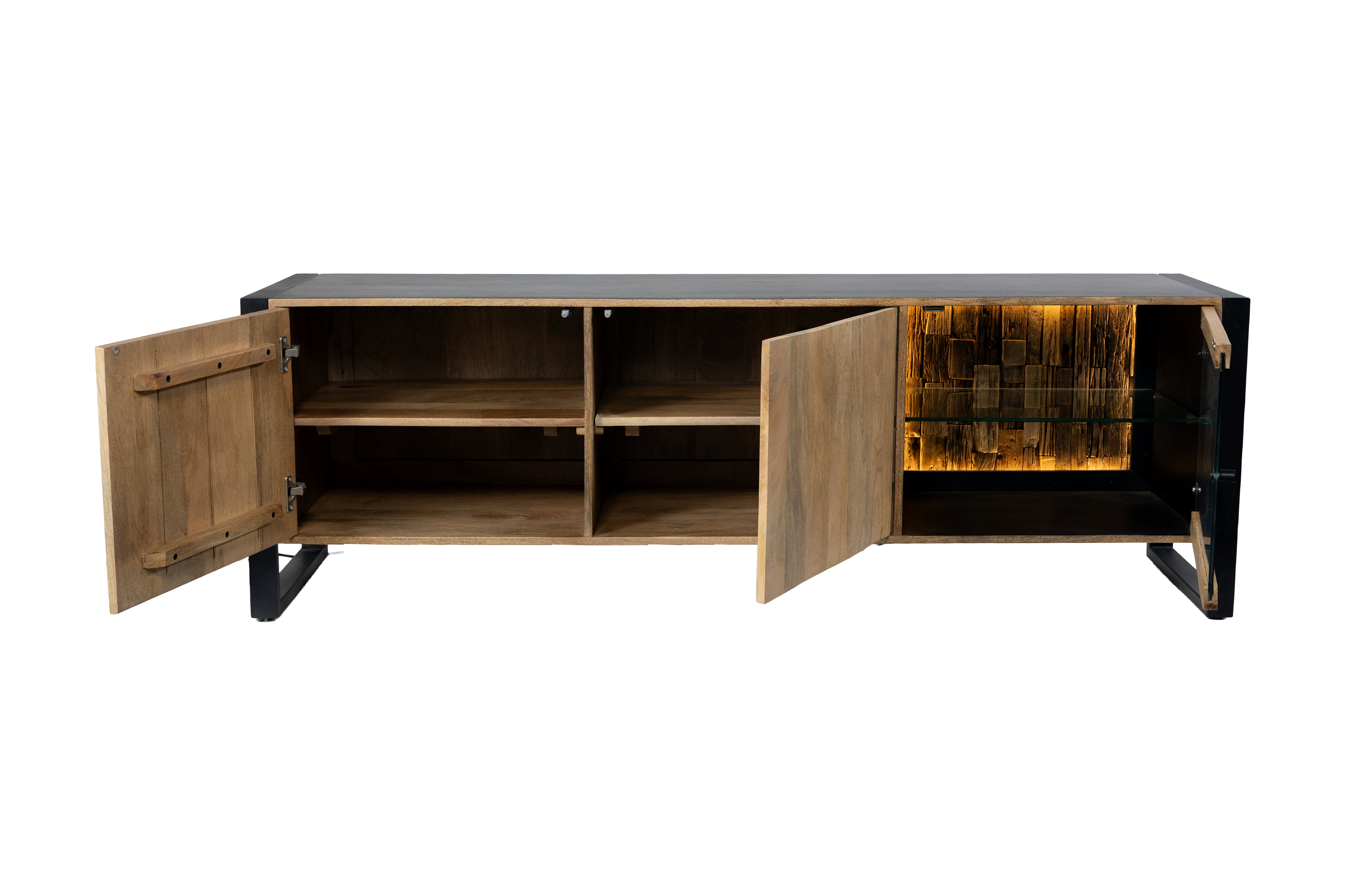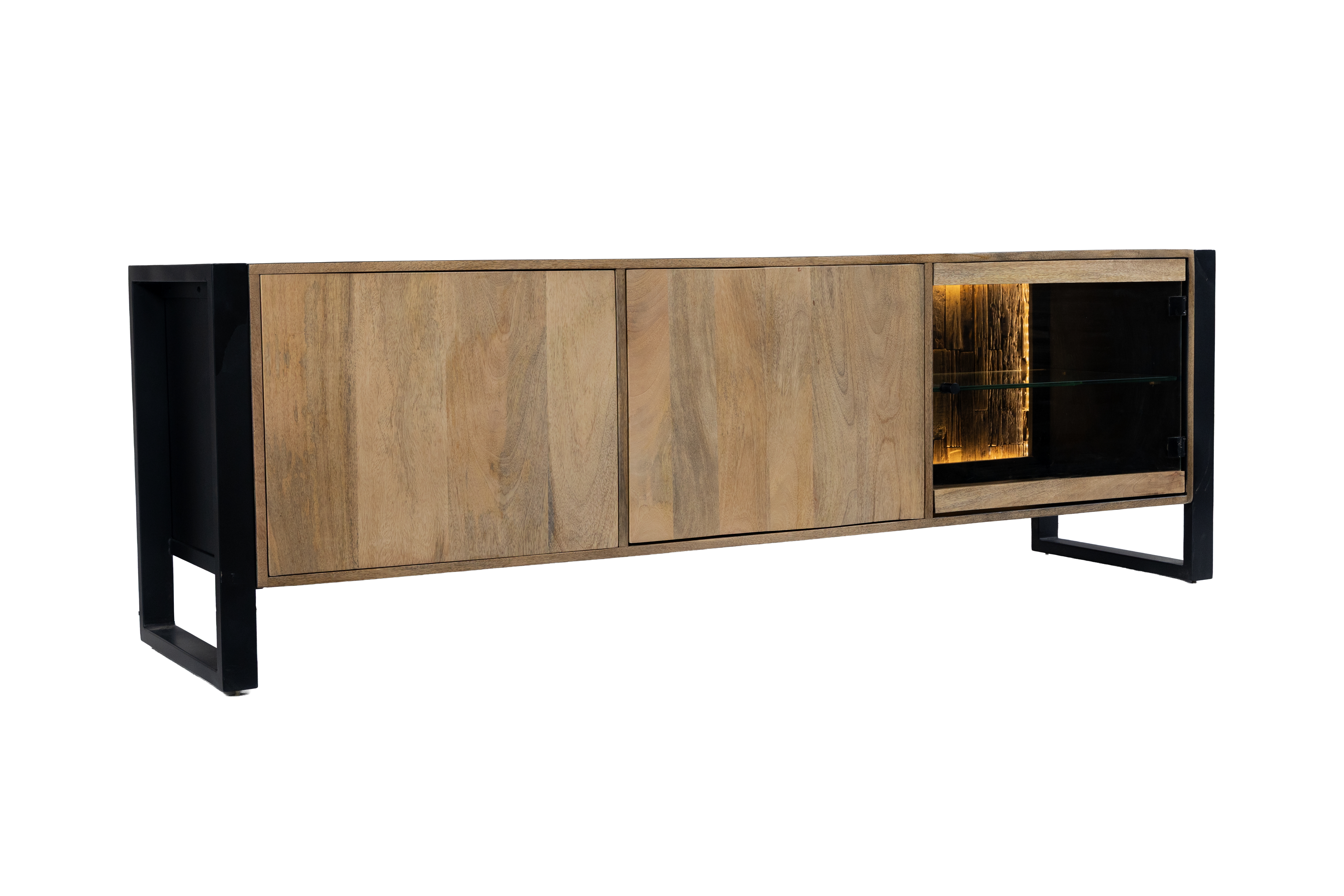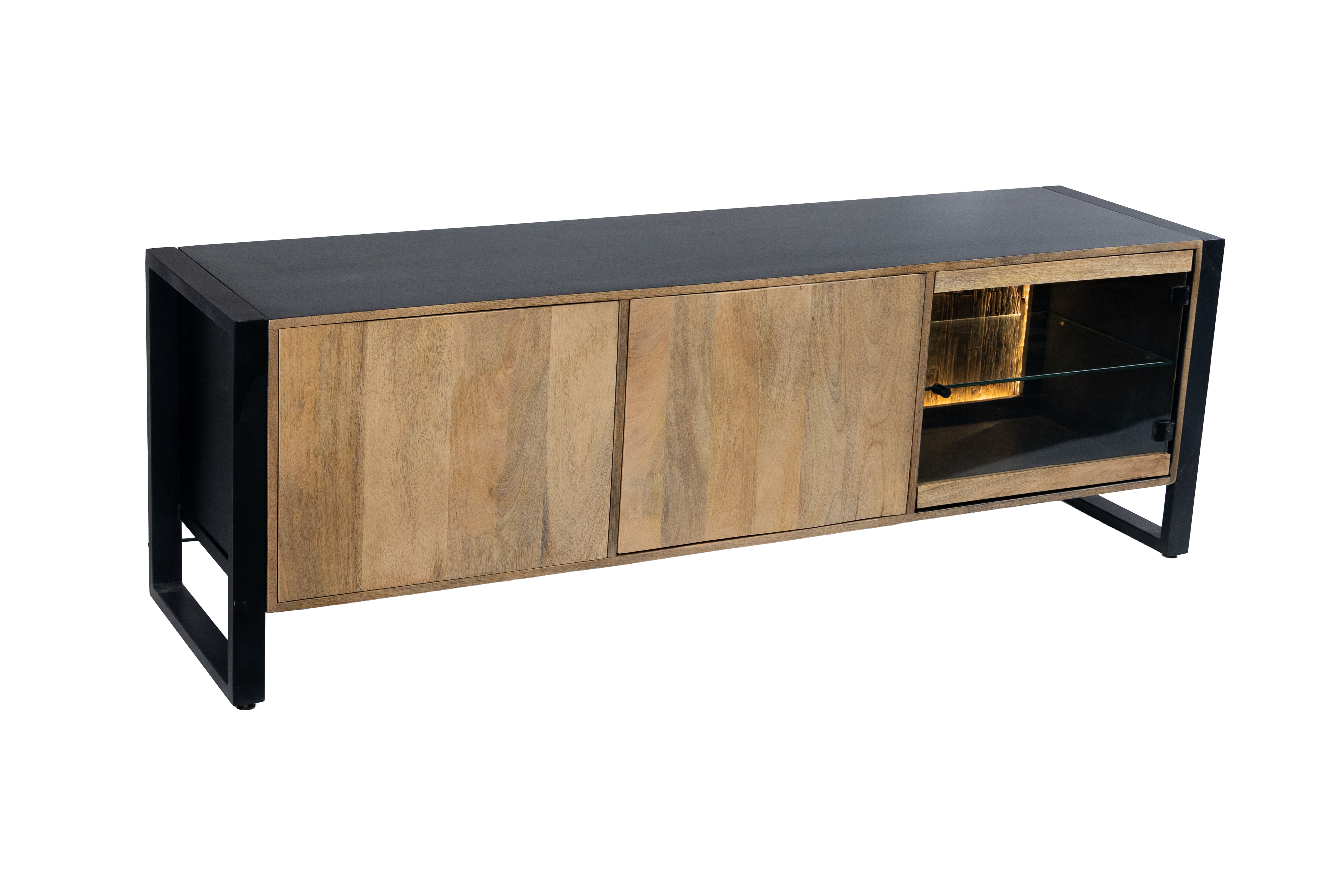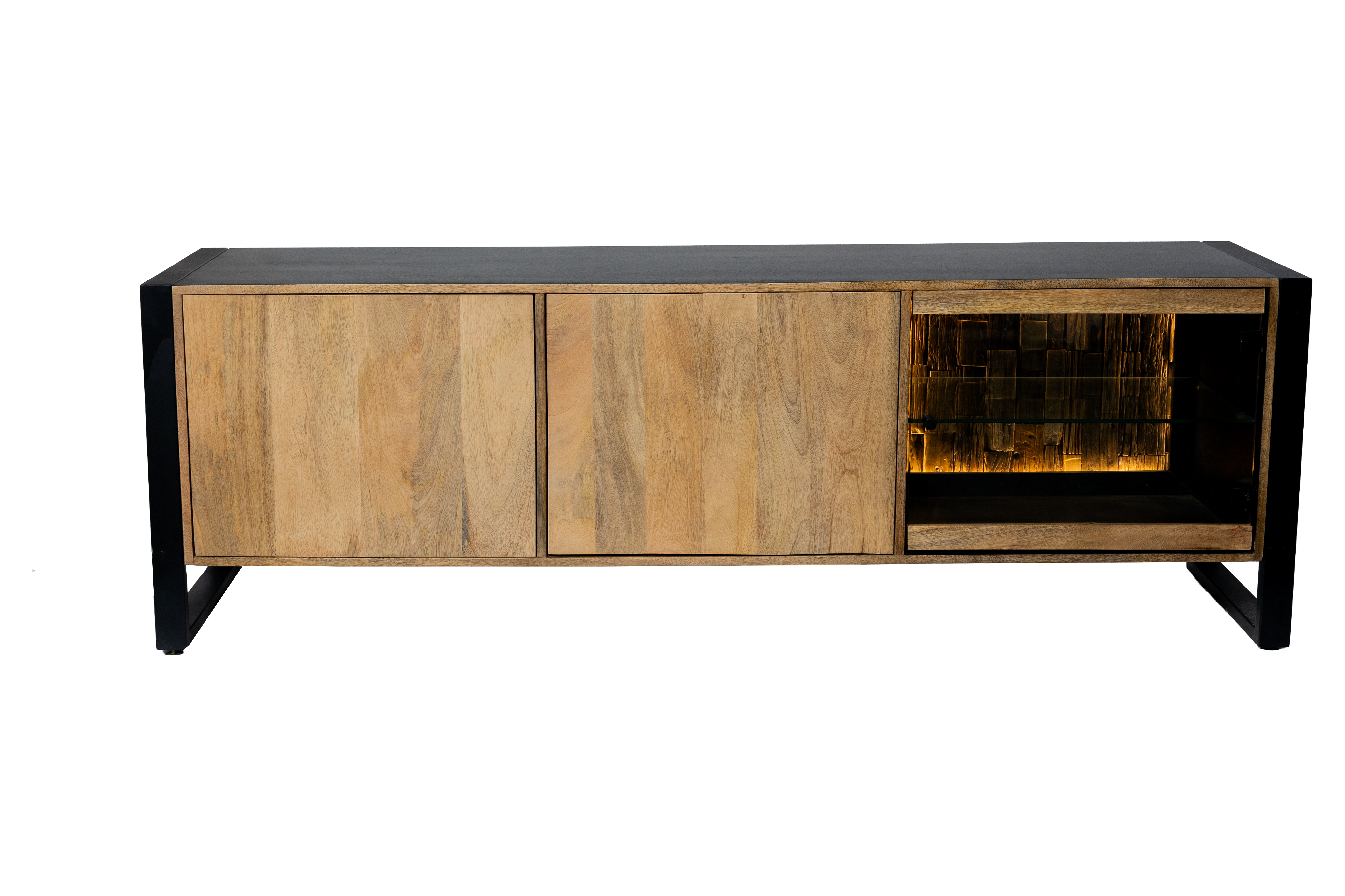 Holz: Mango , Oberfläche: lackiert , Farbe: Schwarz Matt, Honig Glas / Keramik: Glass Tür , Farbe: Natural