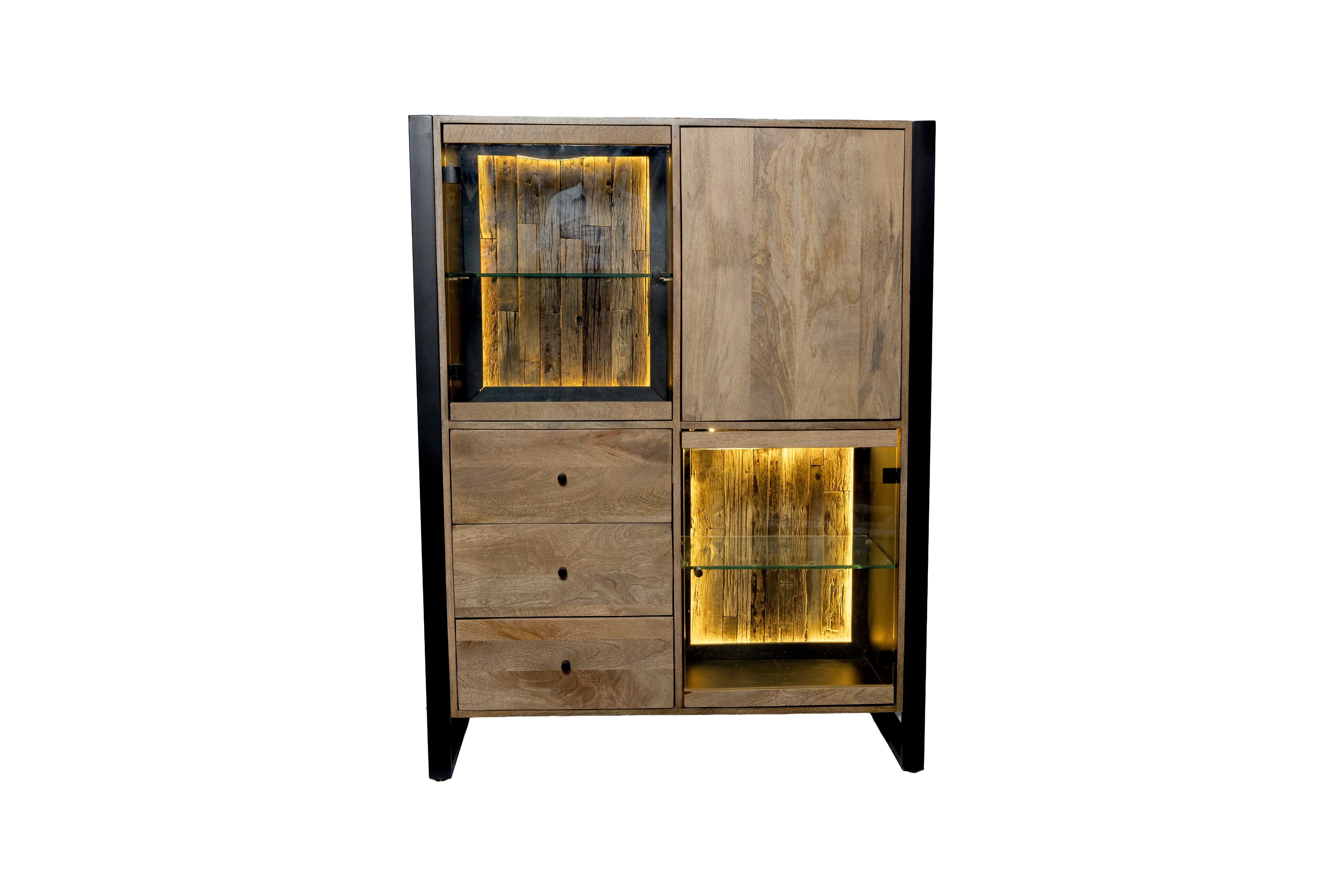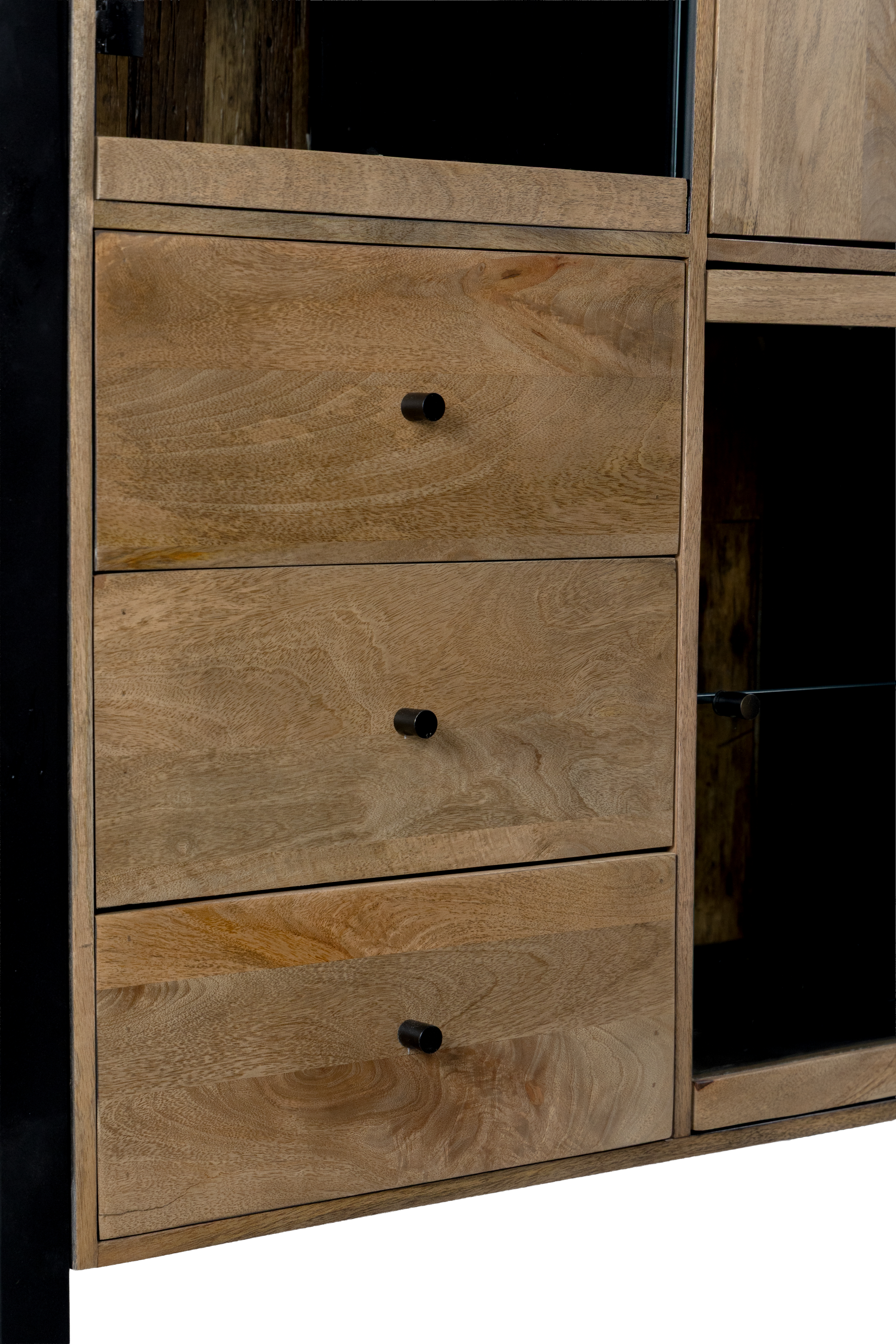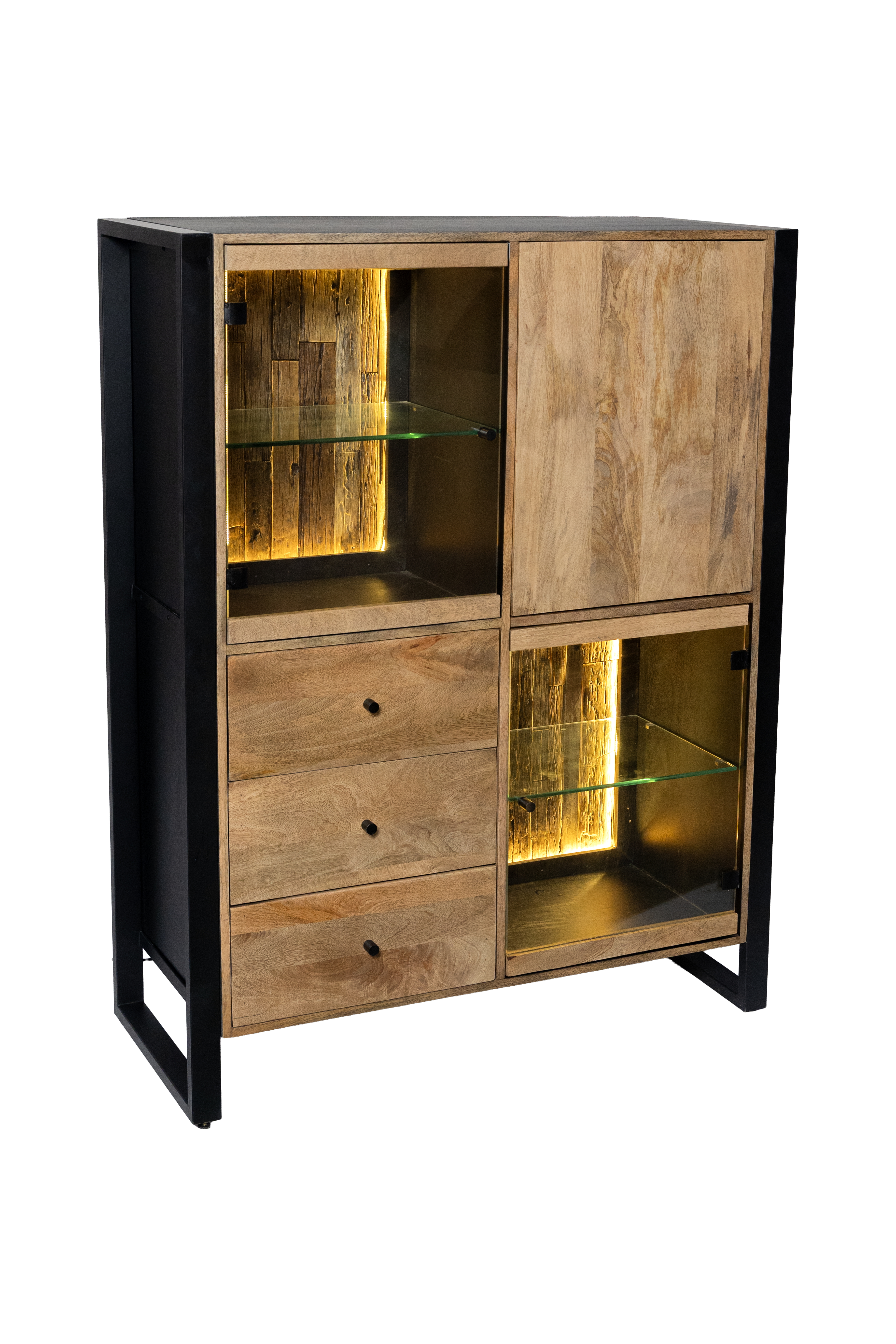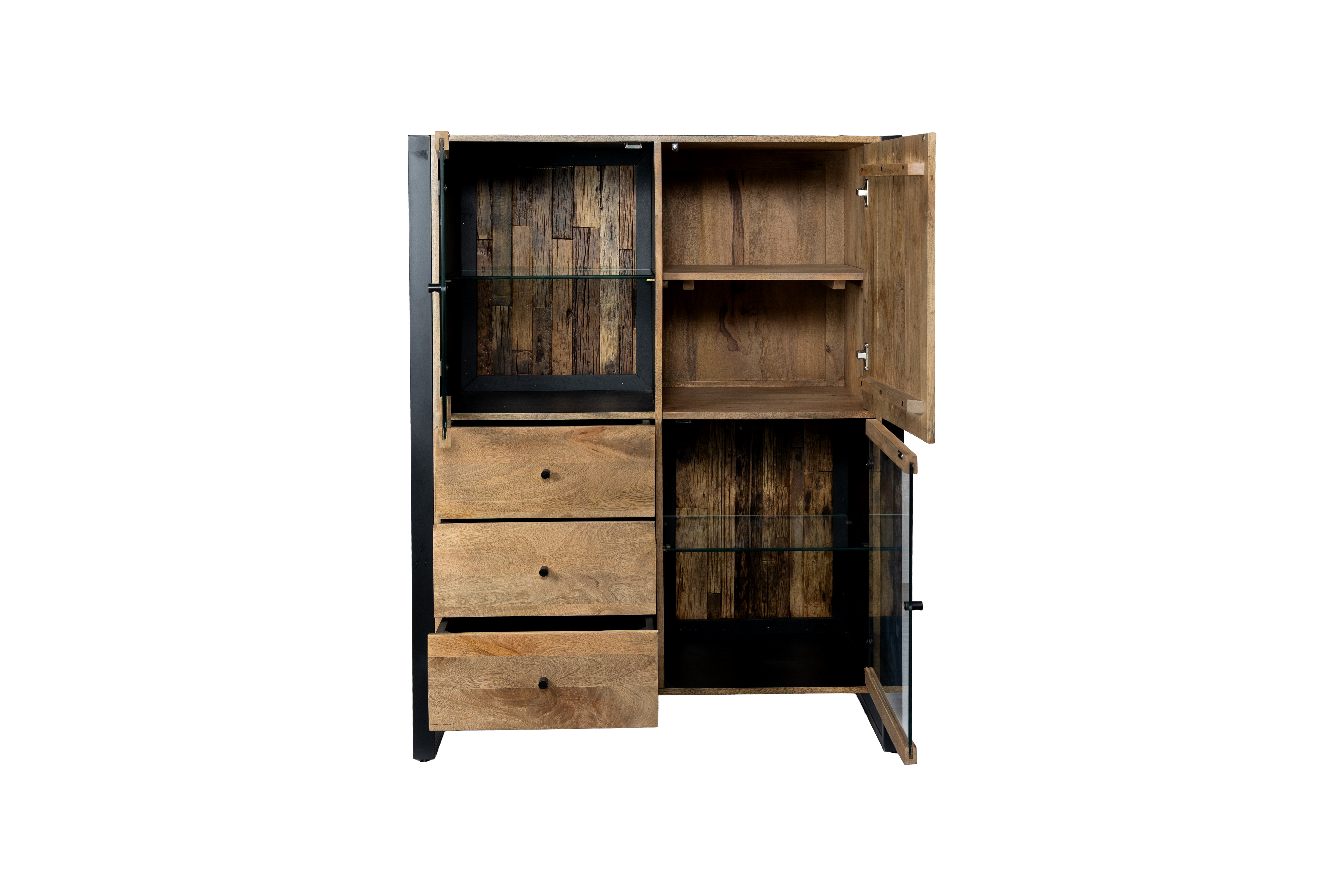 Holz: Mango , Oberfläche: lackiert , Farbe: Schwarz Matt, Honig Glas / Keramik: Glass Tür , Farbe: Natural