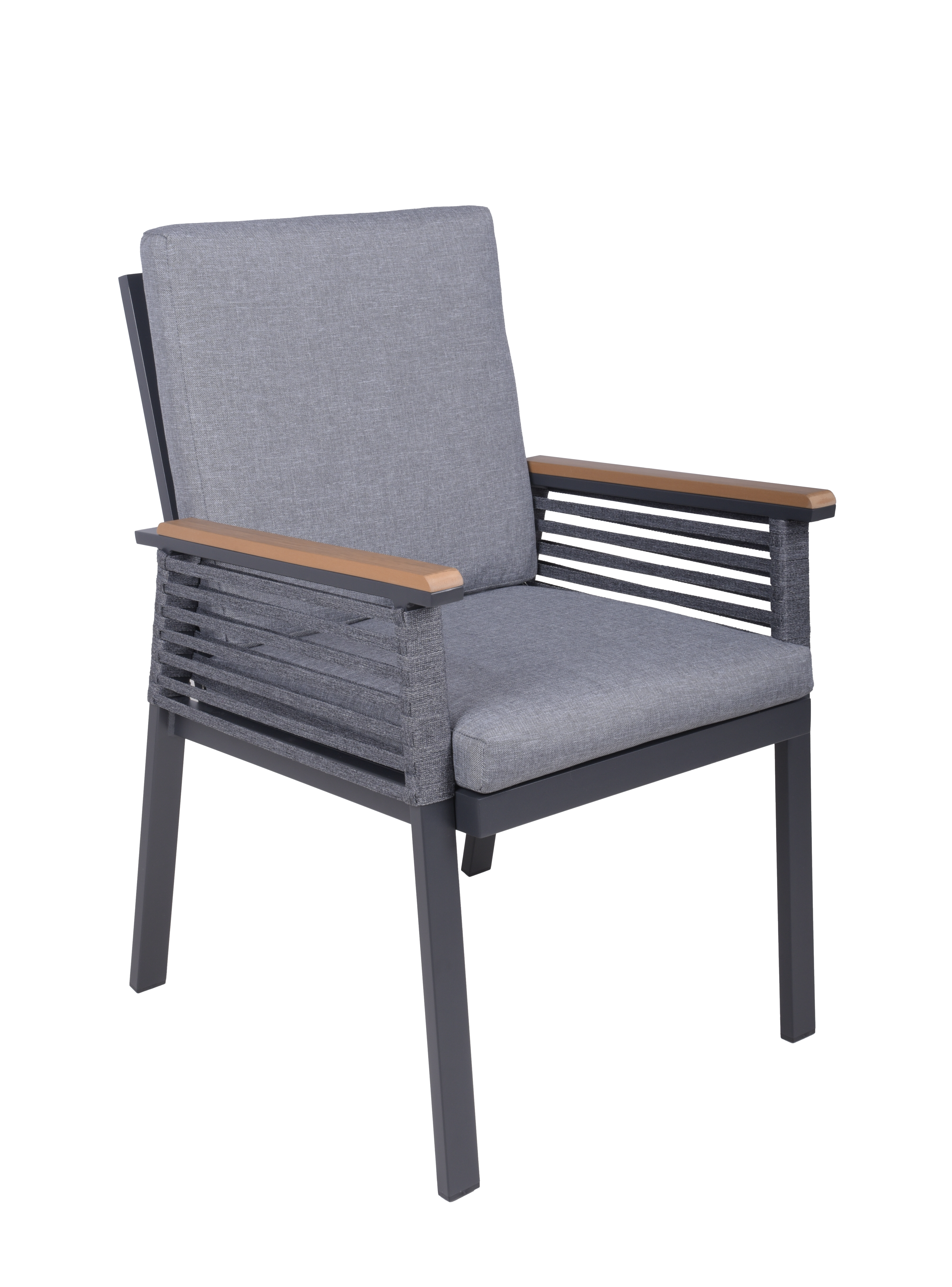 Der Tisch DENIA beeindruckt mit seinem schwarz pulverbeschichteten Aluminiumgestell und großzügigen Maßen von 160 cm Länge, 89,5 cm Breite und 75 cm Höhe. Er bietet ausreichend Platz für gesellige Zusammenkünfte und wird zum Mittelpunkt Ihres Außenbereichs.