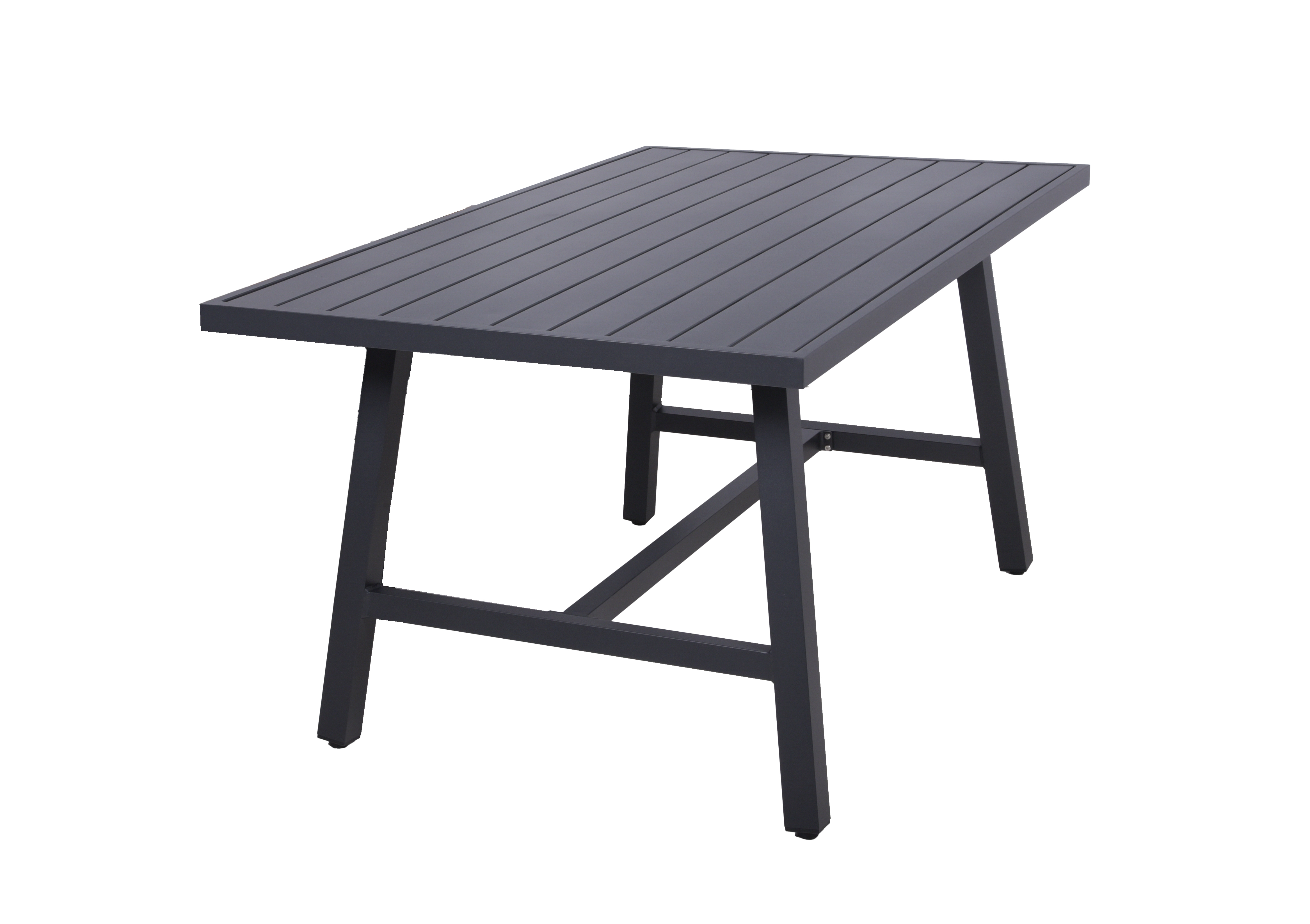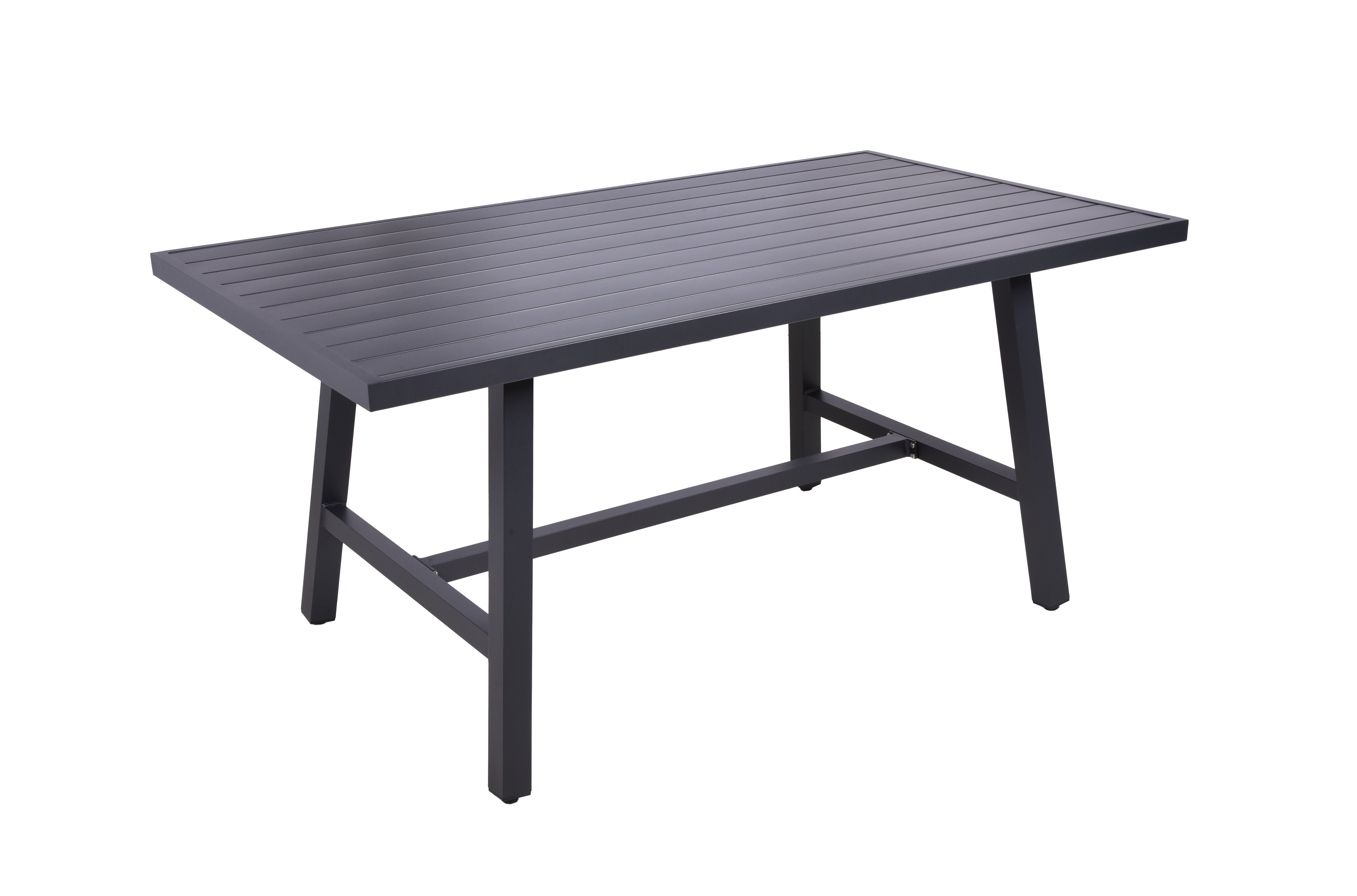 Der Tisch DENIA beeindruckt mit seinem schwarz pulverbeschichteten Aluminiumgestell und großzügigen Maßen von 160 cm Länge, 89,5 cm Breite und 75 cm Höhe. Er bietet ausreichend Platz für gesellige Zusammenkünfte und wird zum Mittelpunkt Ihres Außenbereichs.