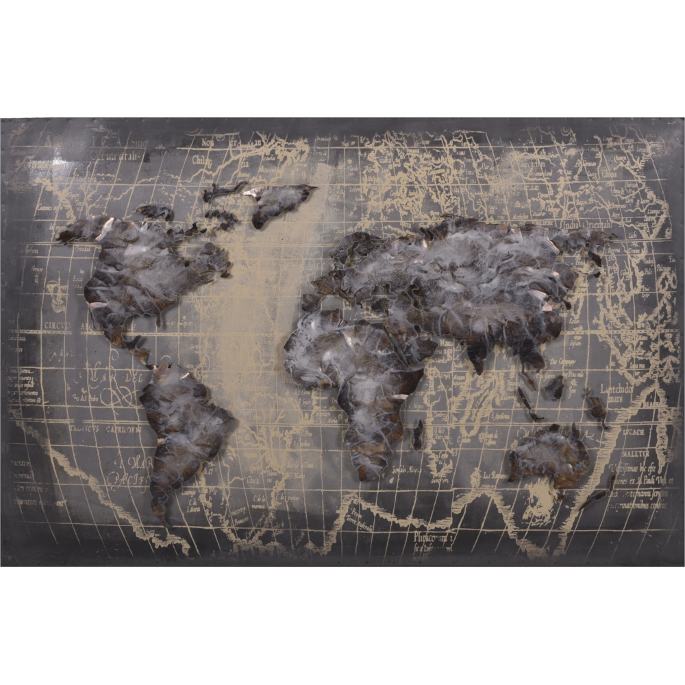 3D Metallbild Weltkarte, grau