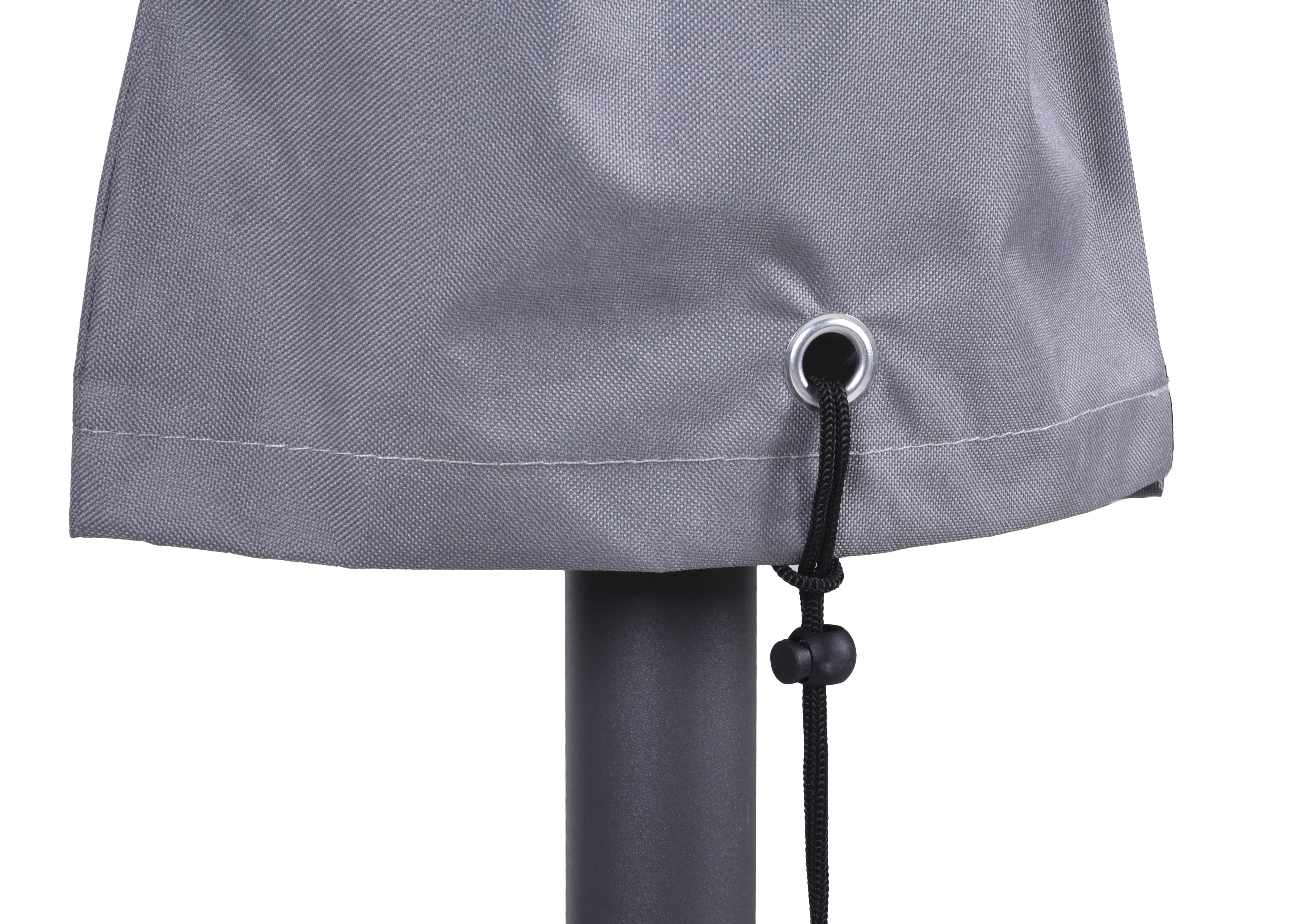 Die Abdeckhaube ist mit Ösen und einer Kordel ausgestattet, die es Ihnen ermöglichen, sie sicher zu befestigen und den Sonnenschirm effektiv vor Regen, Sonne und Schmutz zu bewahren. Die hochwertige Verarbeitung des Materials gewährleistet eine lange Lebensdauer und Widerstandsfähigkeit gegenüber den Wetterbedingungen.