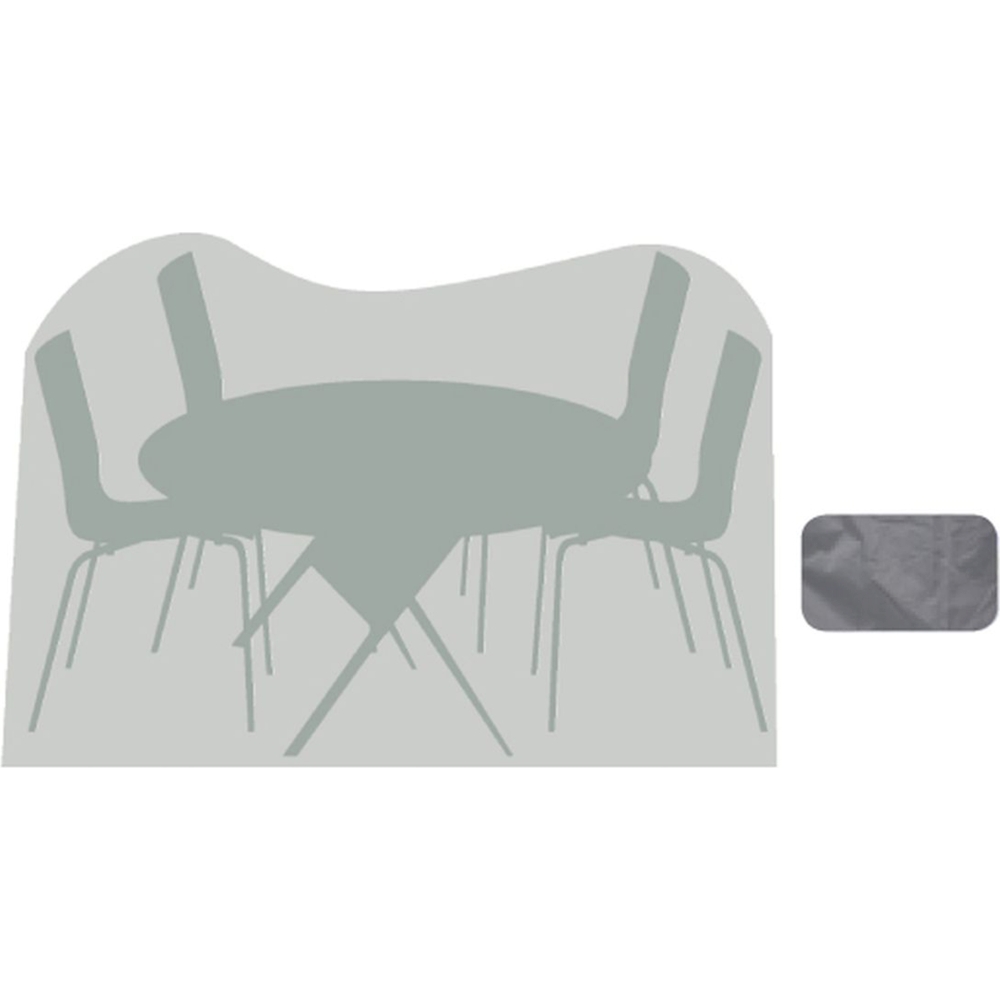 Die Abdeckhaube ist maßgeschneidert, um genau auf 4 Stapelstühle und 1 runden Tisch zu passen und sorgt dafür, dass sie sauber und trocken bleiben.