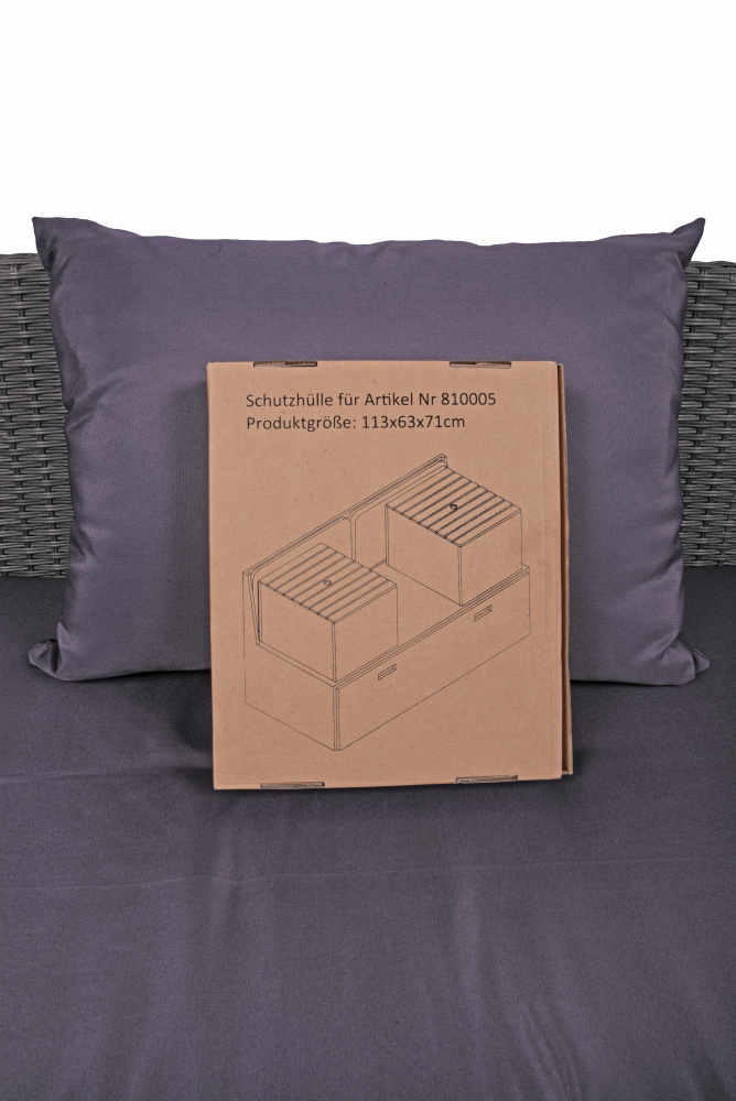 Infotext 1: Diese Schutzhülle schützt nur das Produkt und nicht die Kissen vor Feuchtigkeit. Lagern Sie Kissen nie im Außenbereich.