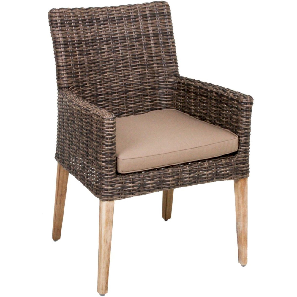 Das hellbraune Kunststoffgeflecht sorgt nicht nur für eine attraktive Textur, sondern bietet auch zusätzliche Stabilität. Der NORVELL Armstuhl ist mit einer beigen Sitzauflage aus 100% Polyester ausgestattet, die nicht nur bequem ist, sondern auch einen Hauch von Eleganz verleiht.