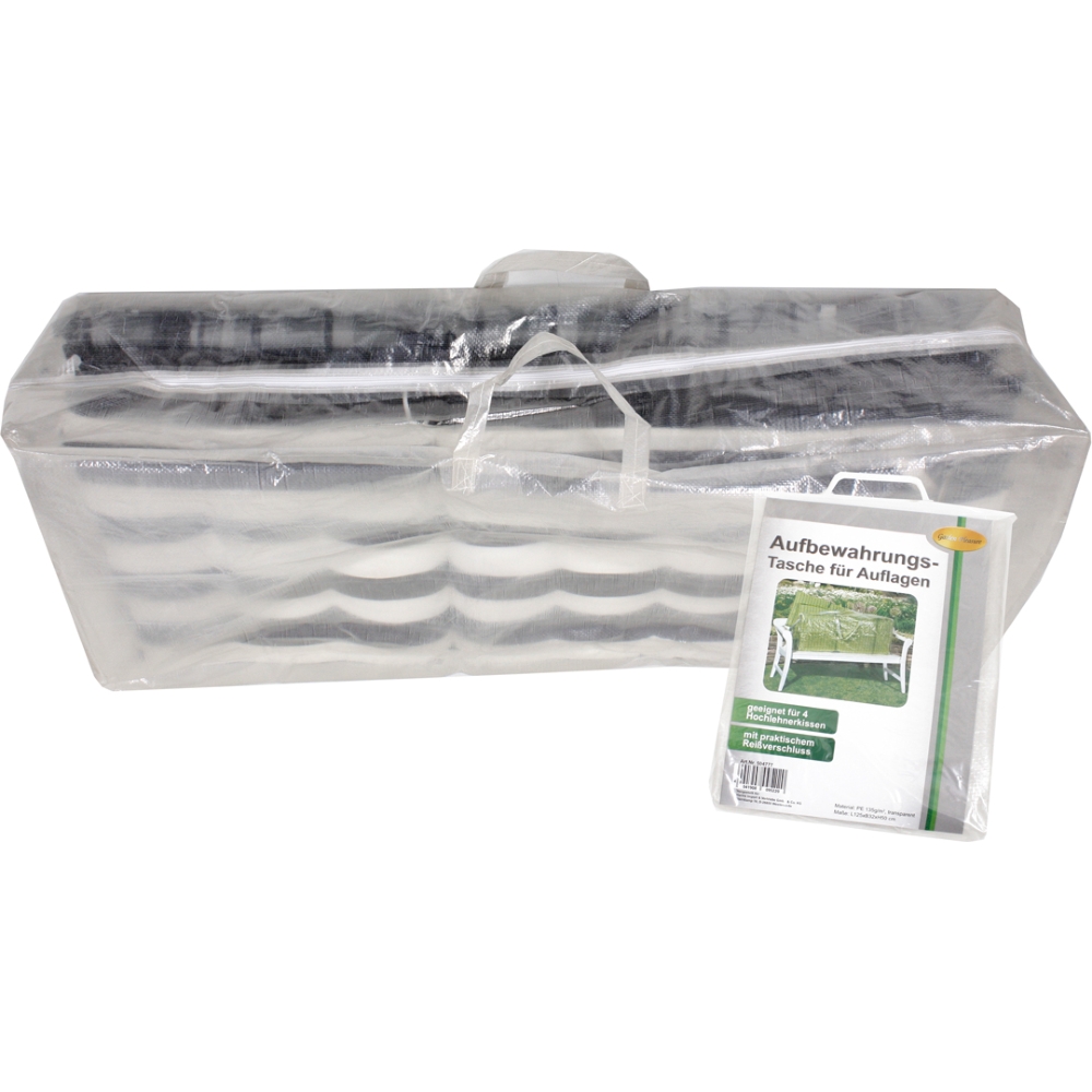 Die Aufbewahrungstasche ist einfach zu handhaben und bietet eine praktische Möglichkeit, Ihre Auflagen im Winter oder bei Nichtbenutzung sicher zu verstauen. Mit dieser Tasche halten Sie Ihre Gartenmöbelauflagen sauber und geschützt für die kommende Saison.