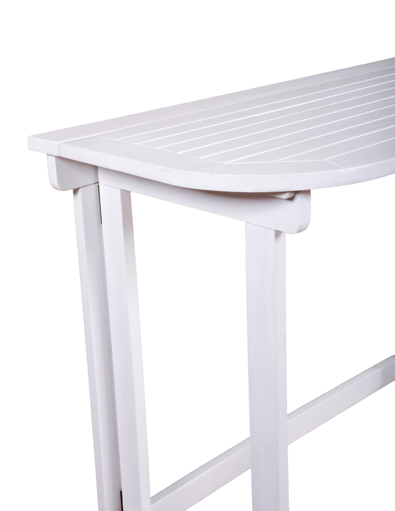 Der Balkon-Tisch MANILA ist die perfekte Ergänzung für Ihren Balkon oder Ihre kleine Terrasse. Hergestellt aus hochwertigem Eukalyptus Grandis Holz, das FSC-zertifiziert ist und ein weißes Finish erhalten hat, bietet dieser Tisch eine Kombination aus natürlicher Schönheit und modernem Design.