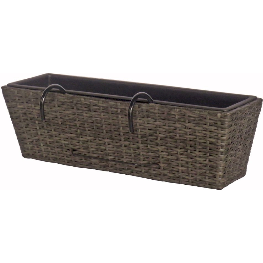 Der Balkonkasten Thalia ist eine stilvolle und praktische Möglichkeit, Ihren Balkon oder Ihre Terrasse mit Pflanzen zu verschönern. Hergestellt aus robustem schwarzen Eisen und dunkelgrauem Kunststoffgeflecht, fügt er sich nahtlos in Ihr Outdoor-Dekor ein.