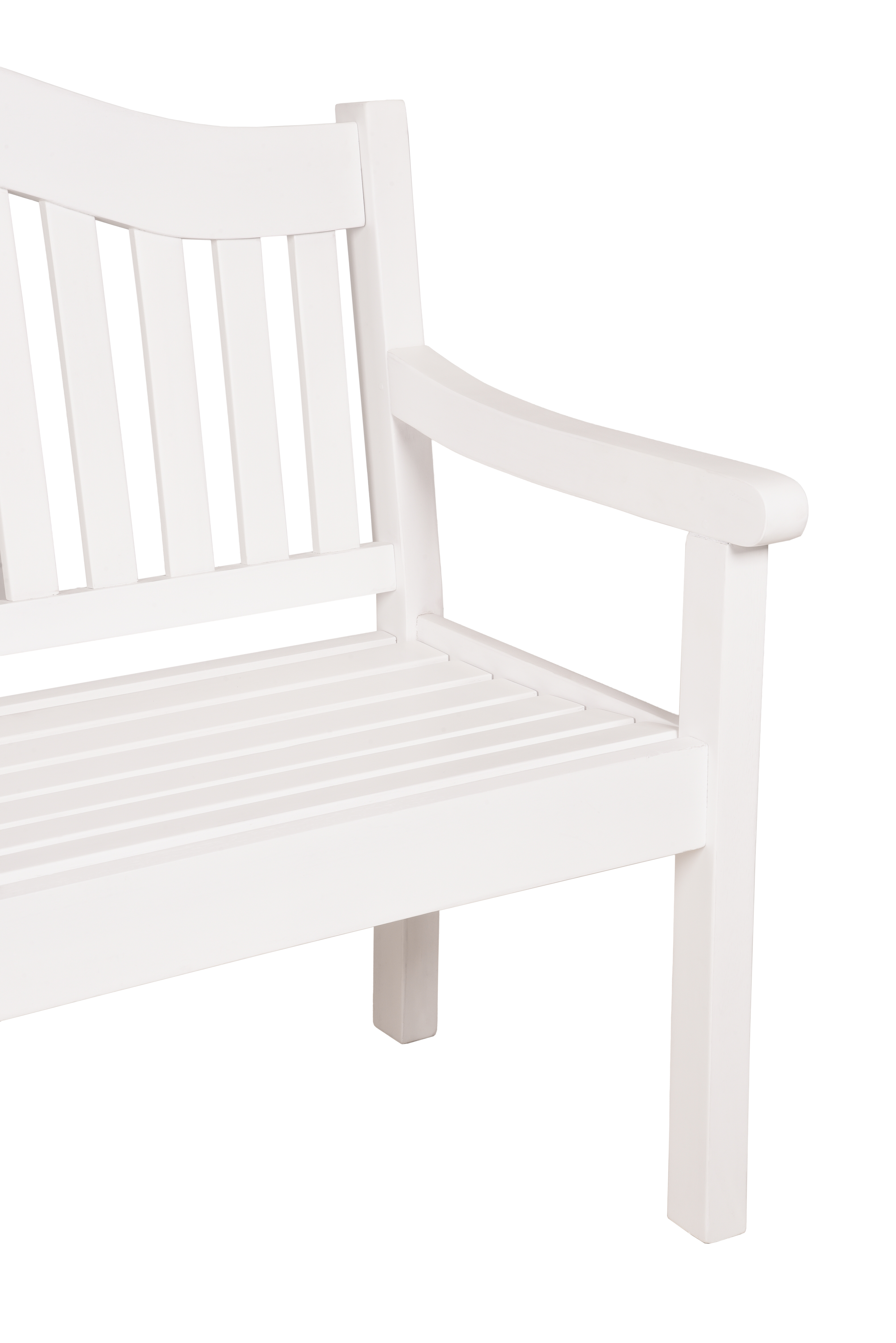 Der weiß-lackierte Eukalyptus verleiht der Bank eine moderne Ausstrahlung, die jeden Garten aufwertet.