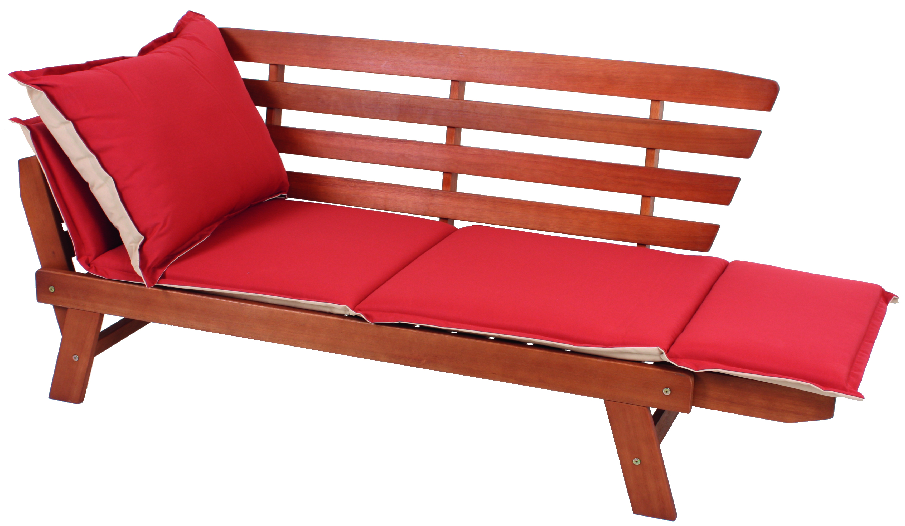 Holz: Eukalyptus , Oberfläche: geölt , Farbe: natur Textil:100% Polyester , Farbe:rot o. weiss