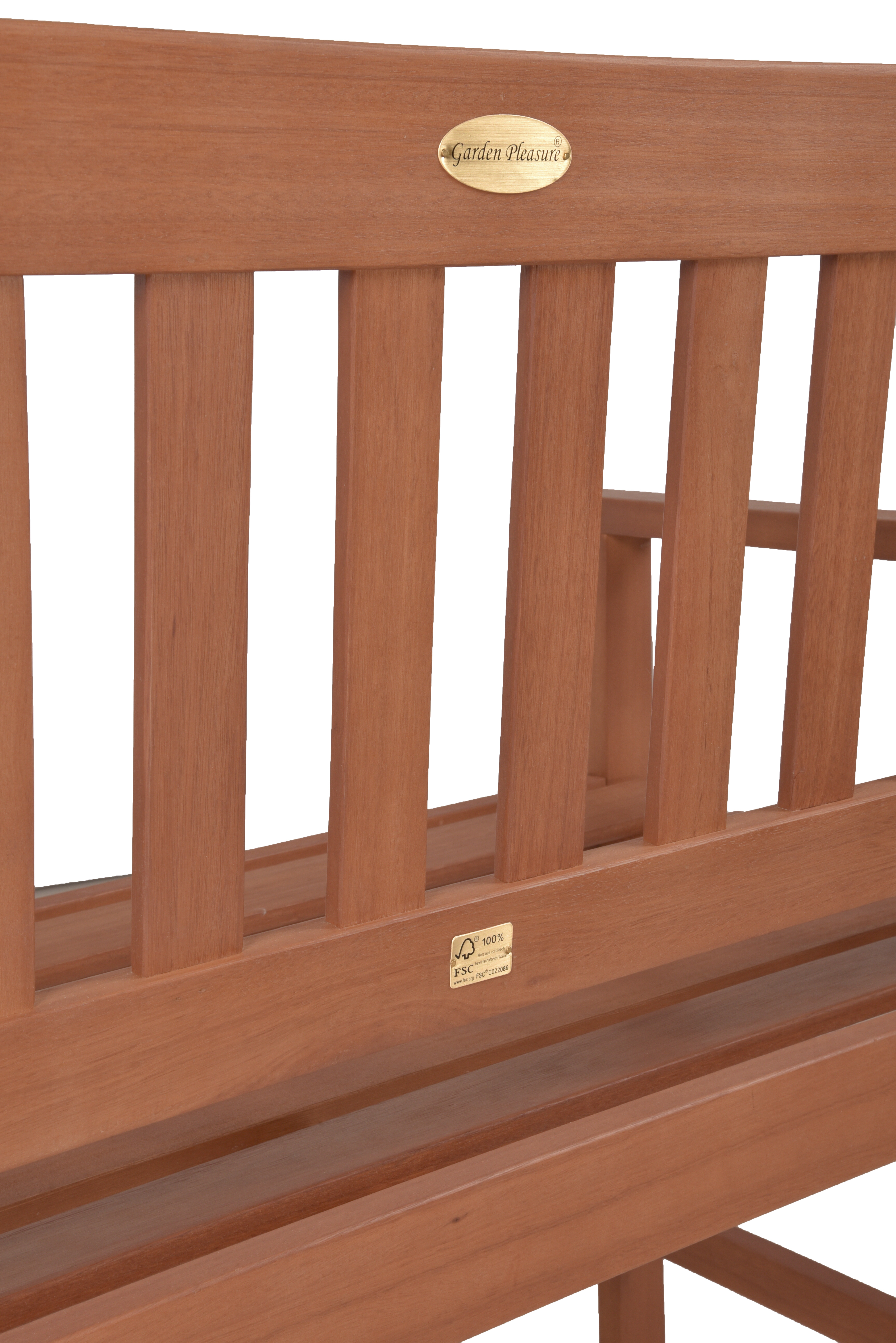 Diese zweisitzige Bank aus hochwertigem Eukalyptusholz vereint natürlichen Charme, erstklassige Qualität und hohen Komfort.