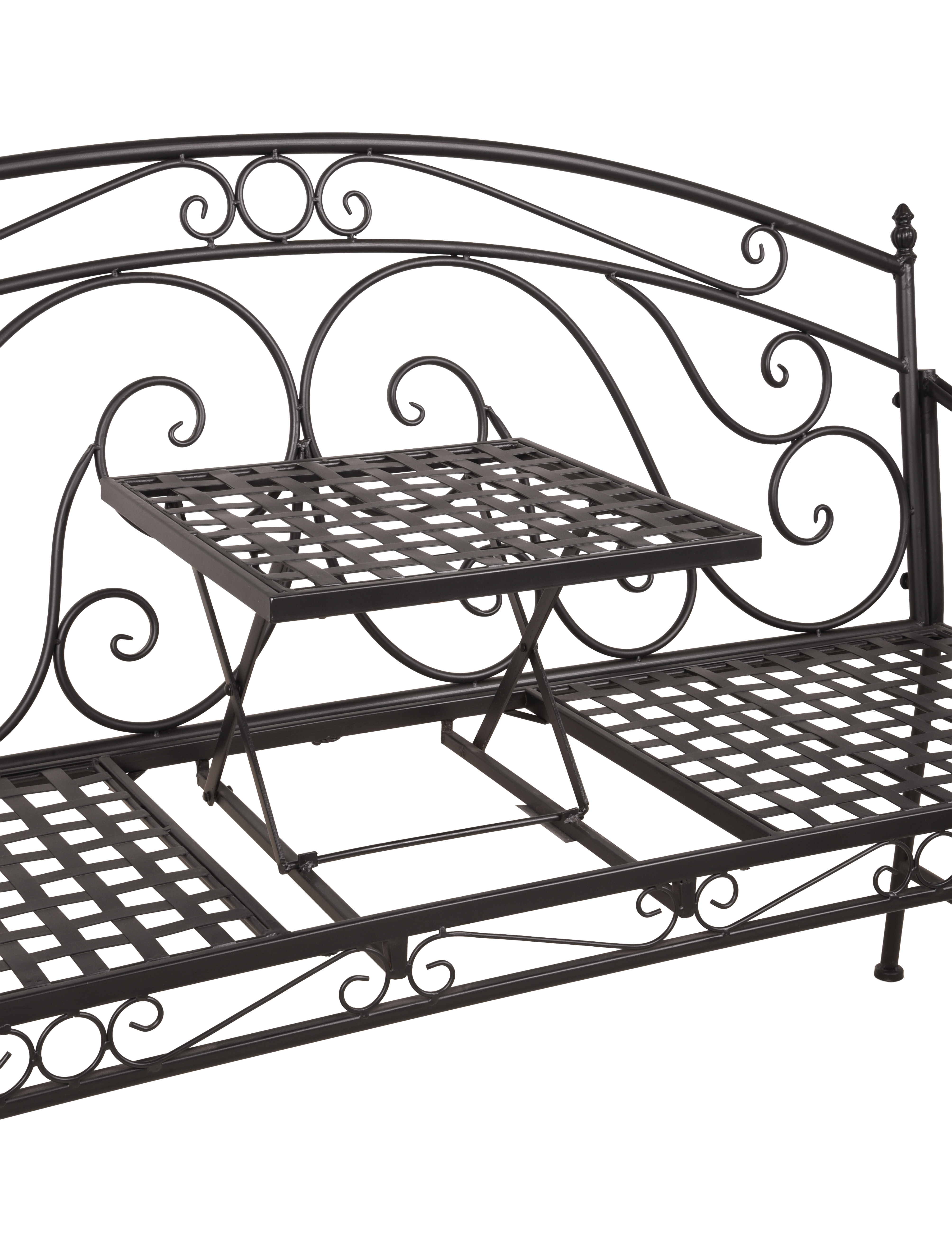 Die Bank SAKET ist ein vielseitiges und modernes Möbelstück aus schwarzem Metall, das mit einem hochklappbaren Tisch ausgestattet ist. Hergestellt aus hochwertigem Metall, bietet diese Bank eine robuste und langlebige Konstruktion.
