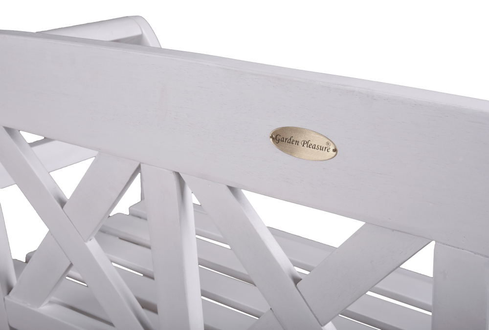 Der weiß-gestrichene Eukalyptus verleiht der Bank eine moderne Ausstrahlung, die jeden Garten aufwertet.