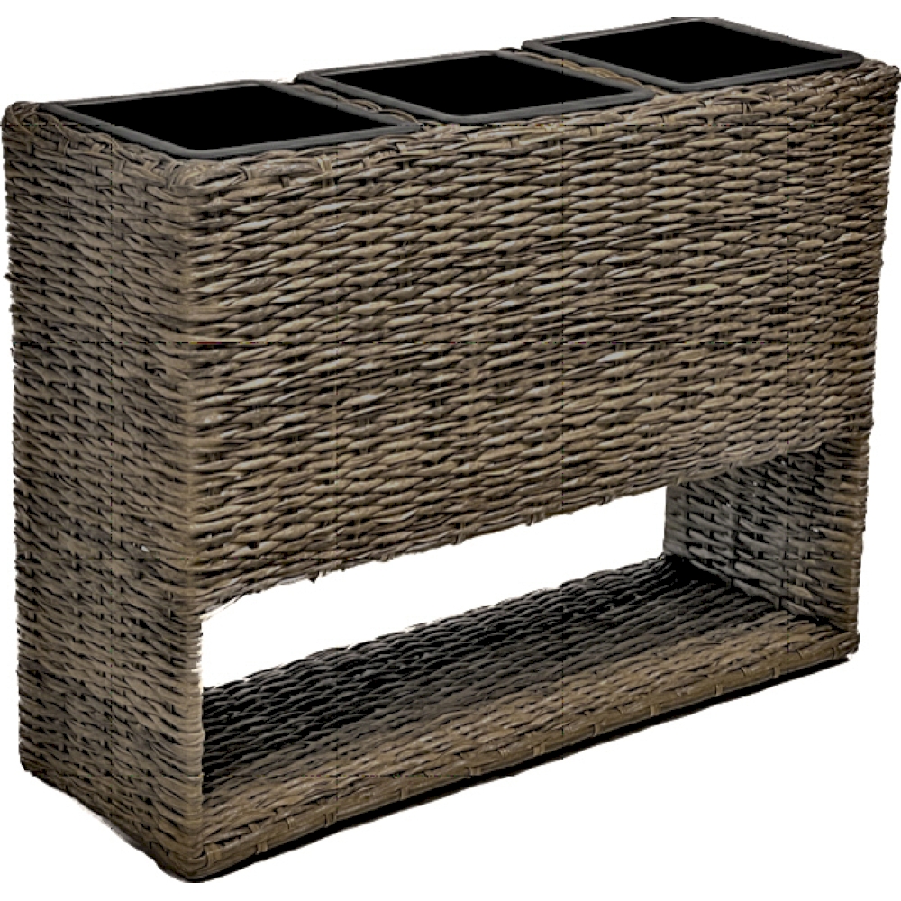 Stahl / Kunststoffgeflecht, mit 3 Pflanztöpfen, pfefferbraun