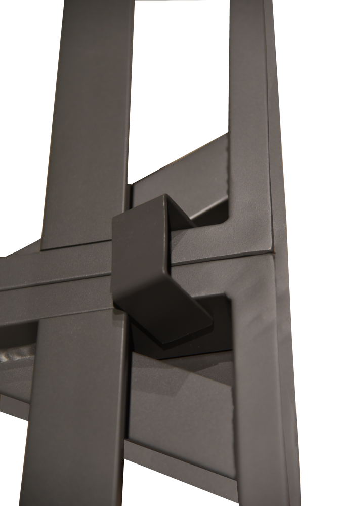 Hergestellt aus pulverbeschichtetem dunkelgrauem Aluminium und mit strapazierfähigem grauem Polyestergewebe bietet sie eine robuste Konstruktion, die den Elementen standhält.