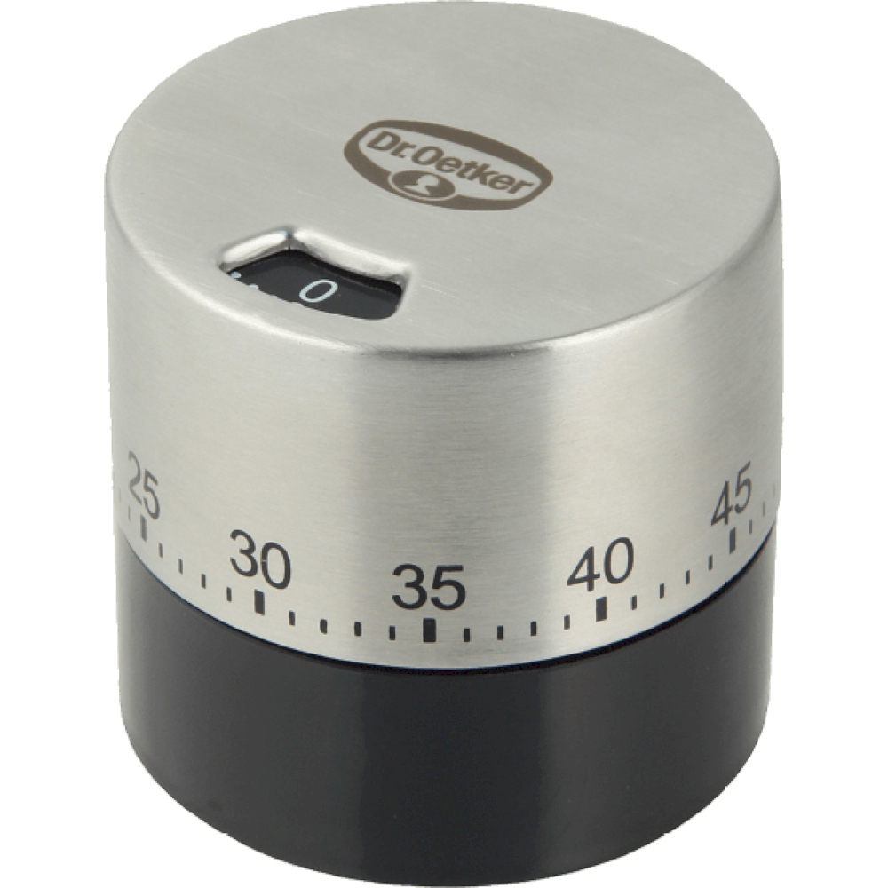 Der Dr. Oetker Kurzzeitmesser ist ein praktisches Küchenwerkzeug, das Ihnen hilft, die Garzeiten Ihrer Gerichte präzise zu überwachen. Hergestellt aus robustem grauem Aluminium und schwarzem Kunststoff, ist dieser Kurzzeitmesser mechanisch, sodass keine Batterien benötigt werden.
