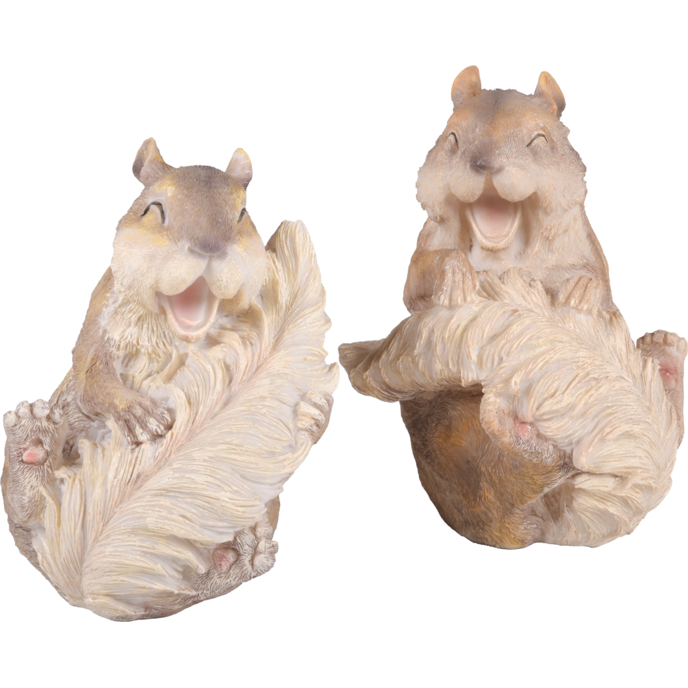 Diese beiden niedlichen Eichhörnchen sind aus wetterfestem Polyresin gefertigt und eignen sich perfekt für den Außenbereich. Mit ihren lachenden Gesichtern und den lebhaften Details verleihen sie Ihrem Garten eine fröhliche und verspielte Atmosphäre.