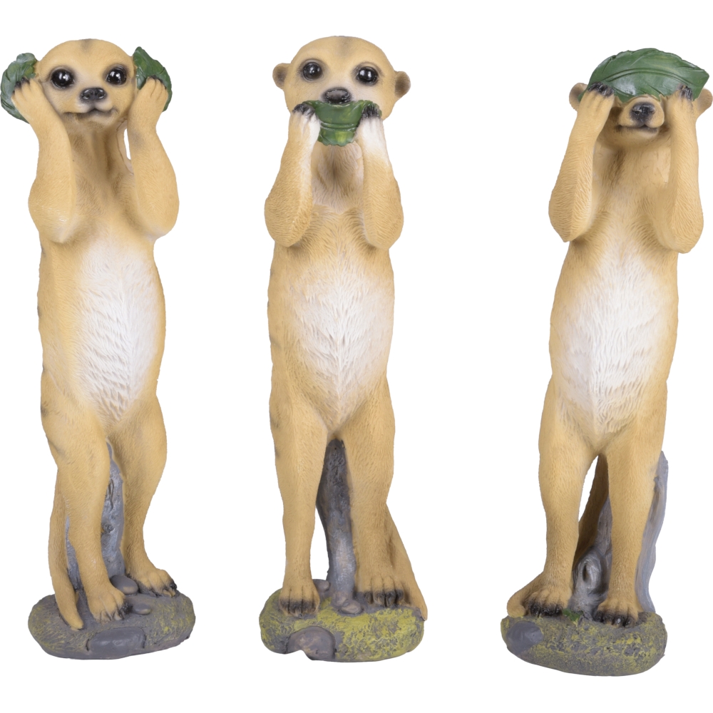 Die Erdmännchen FABIO, GINO und VITO sind entzückende Outdoor-Dekorationsfiguren, handgefertigt aus strapazierfähigem braunen/beigen Polyresin.