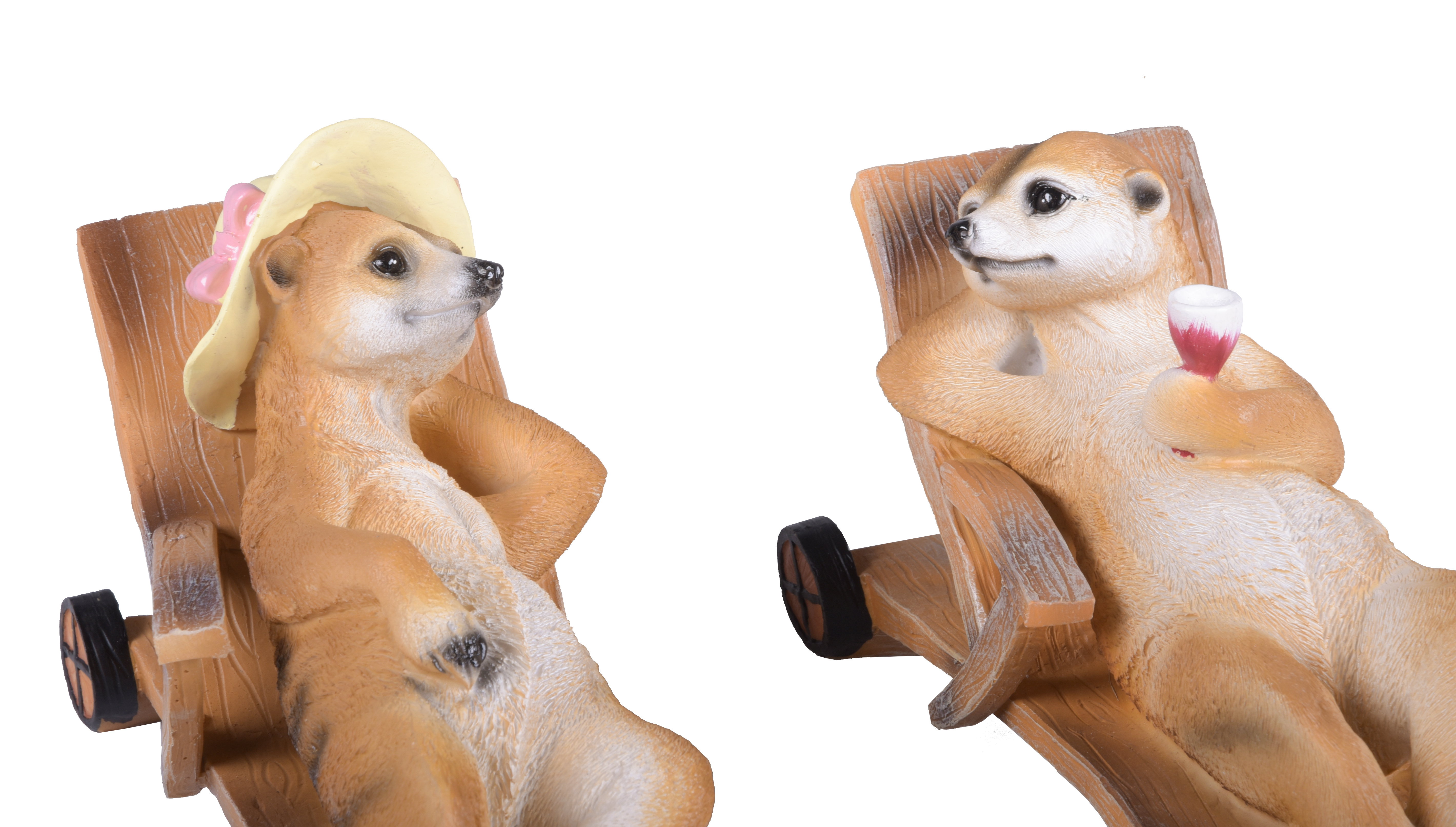 Diese charmanten Erdmännchen-Figuren "Chilli & Willi" auf ihren Liegen sind eine witzige und unterhaltsame Ergänzung für Ihre Garten- oder Außendekoration. Das Set enthält zwei verschiedene Erdmännchen, von denen jedes einen eigenen, individuellen Charme und Stil ausstrahlt.