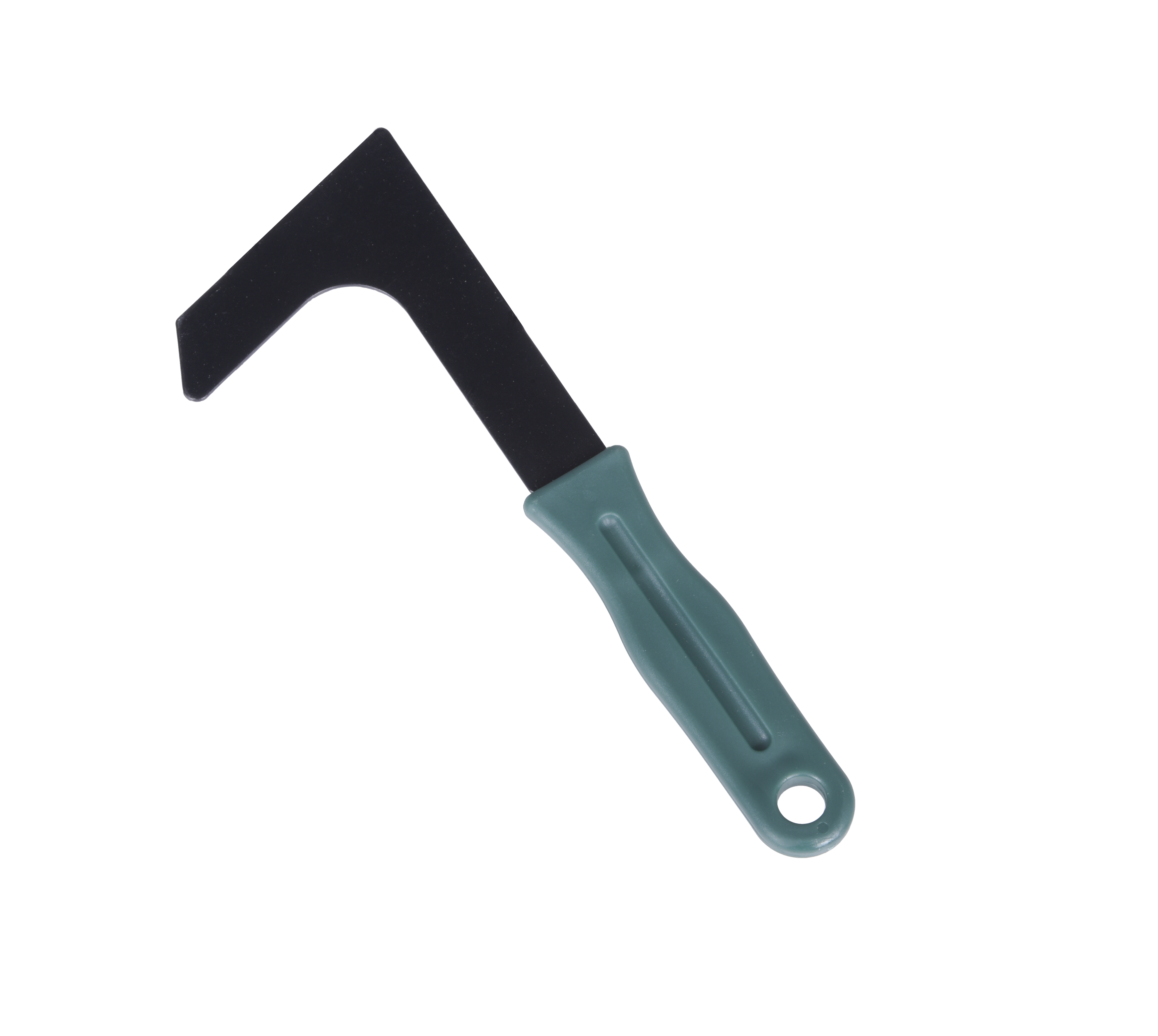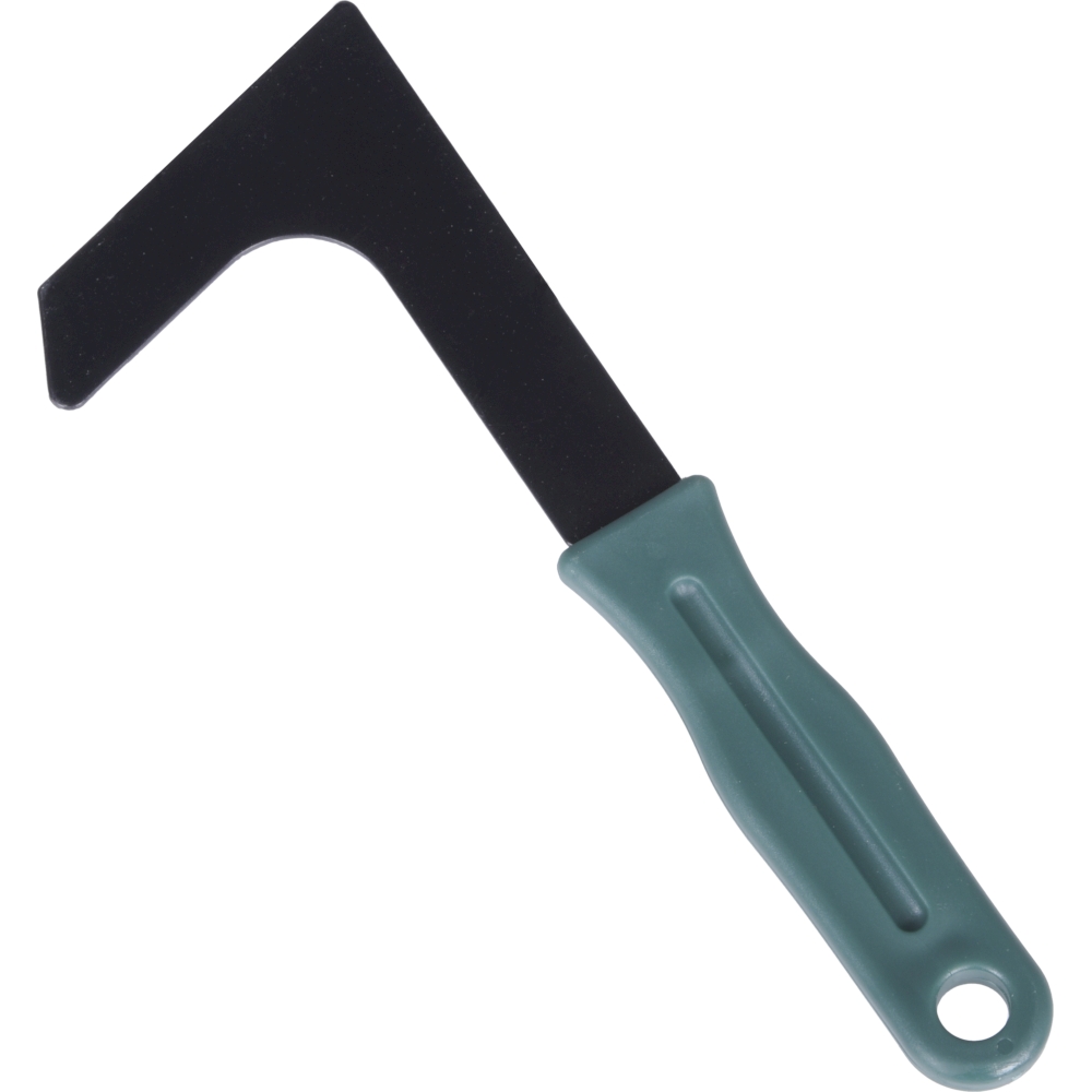 Das Fugenmesser ist ein praktisches Werkzeug für Arbeiten im Garten und Hof. Der Griff ist aus strapazierfähigem grünem Kunststoff (PP) gefertigt und liegt gut in der Hand.