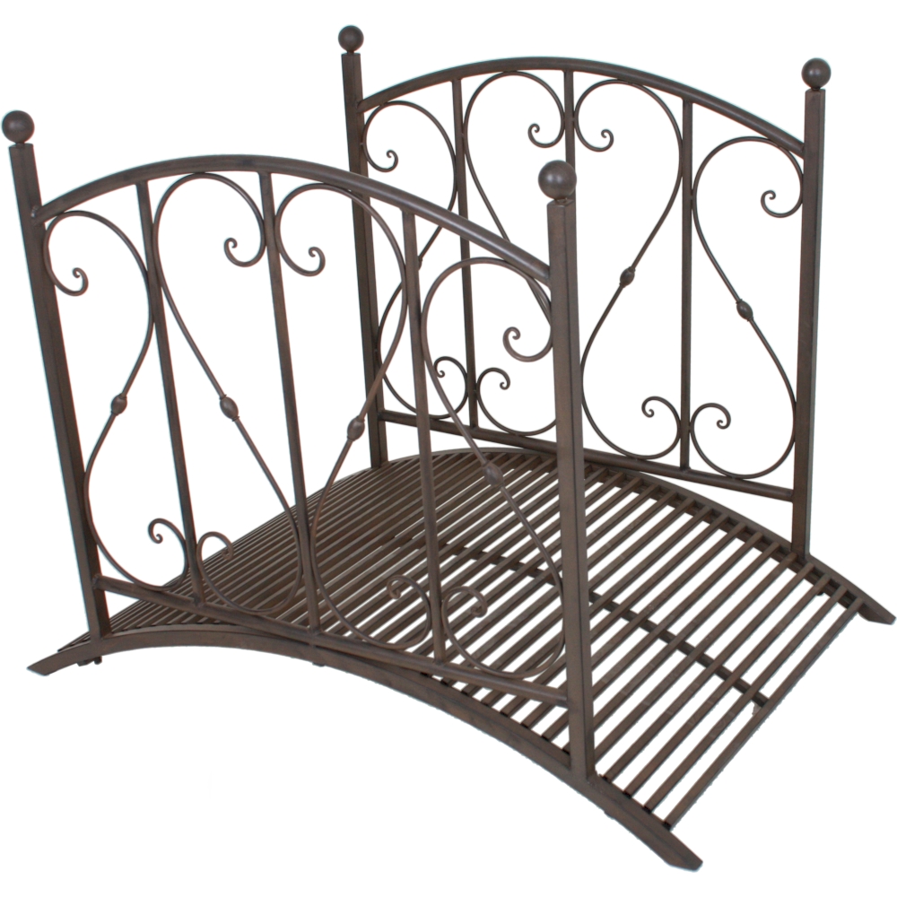 Die TAUPO-Gartenbrücke besteht aus schwarzbraunem Metall in einer edlen Rostoptik, die perfekt in den natürlichen Charakter eines Gartens passt.