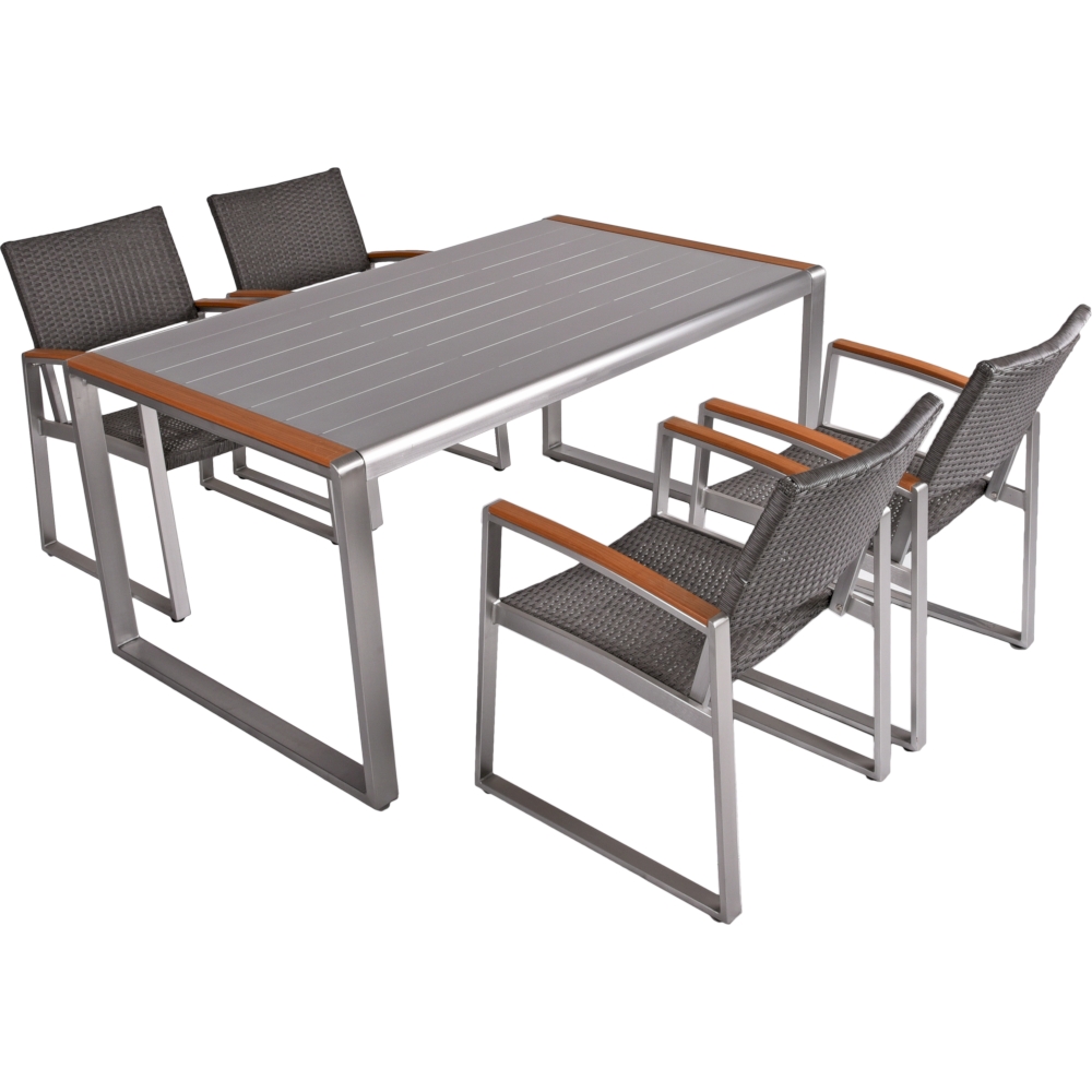 Die Gruppe AVA 5tlg. ist die perfekte Wahl, um Ihren Innen- oder Außenbereich stilvoll und komfortabel zu gestalten. Dieses Set besteht aus einem rechteckigen Tisch und vier Stühlen mit Armlehnen, die mit hochwertigen Materialien und einem modernen Design gefertigt sind.