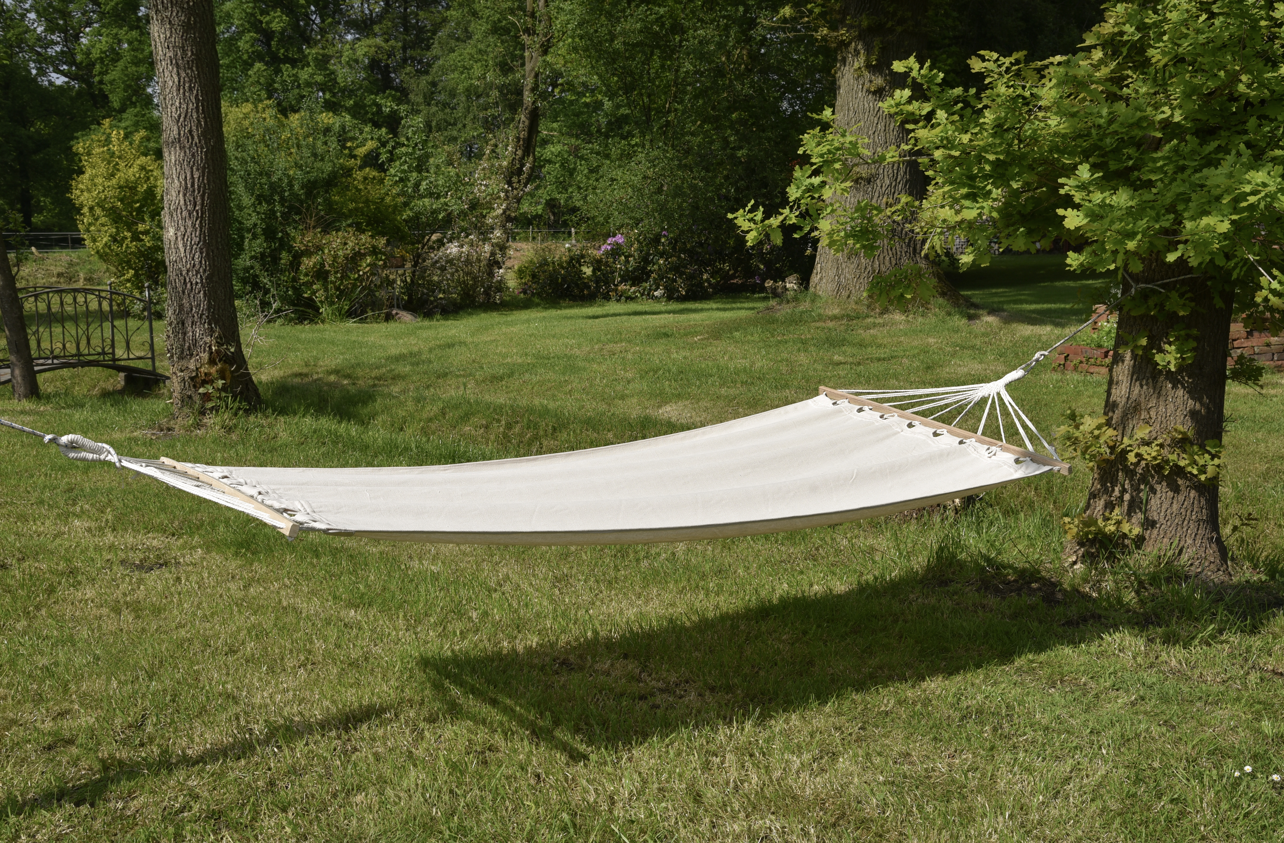 Die Hängematte HAWAII in Beige bietet eine stilvolle Optik und hochwertige Materialien, um ein komfortables und ansprechendes Design zu schaffen. Eine großartige Wahl für alle, die ein stilvolles und bequemes Outdoor-Erlebnis suchen.