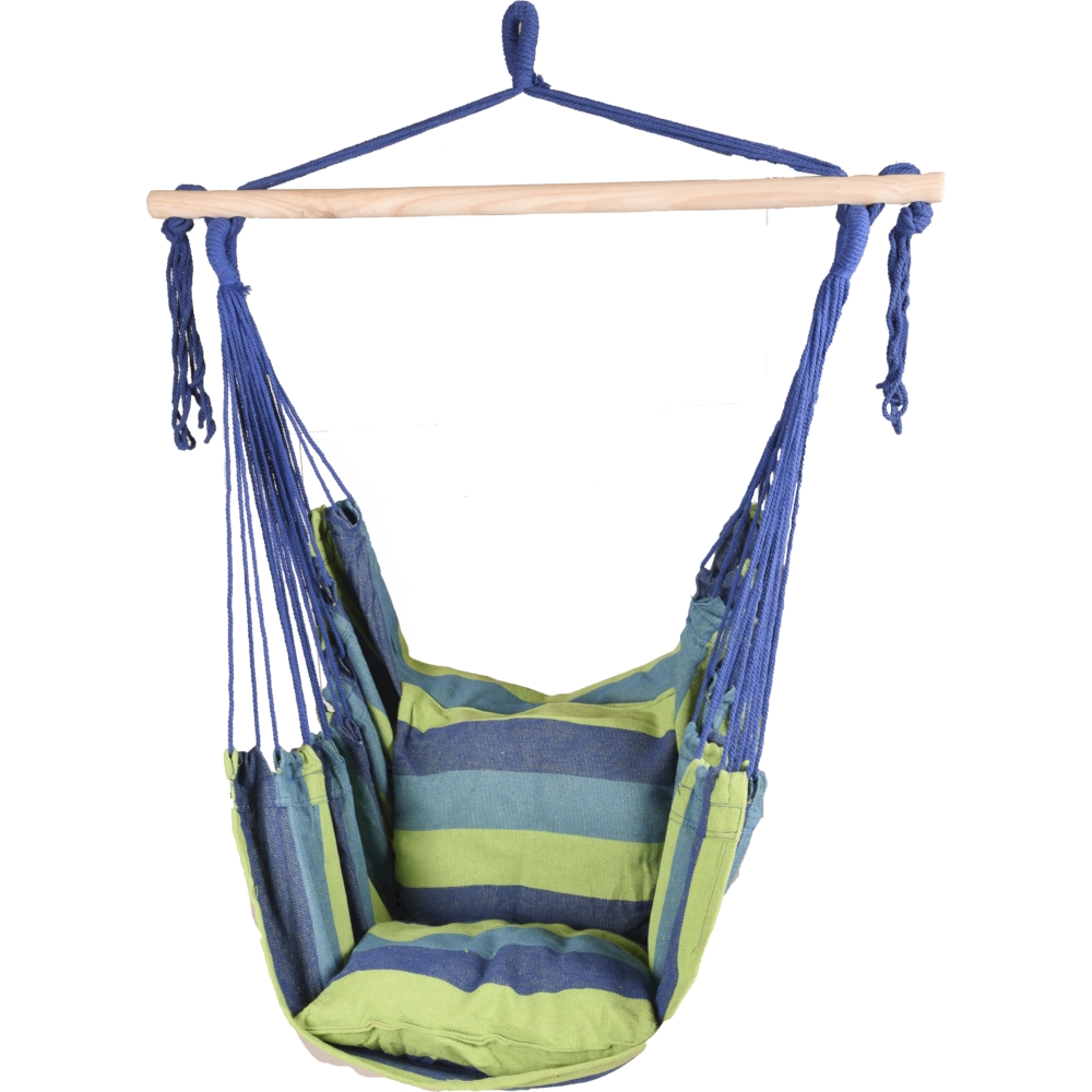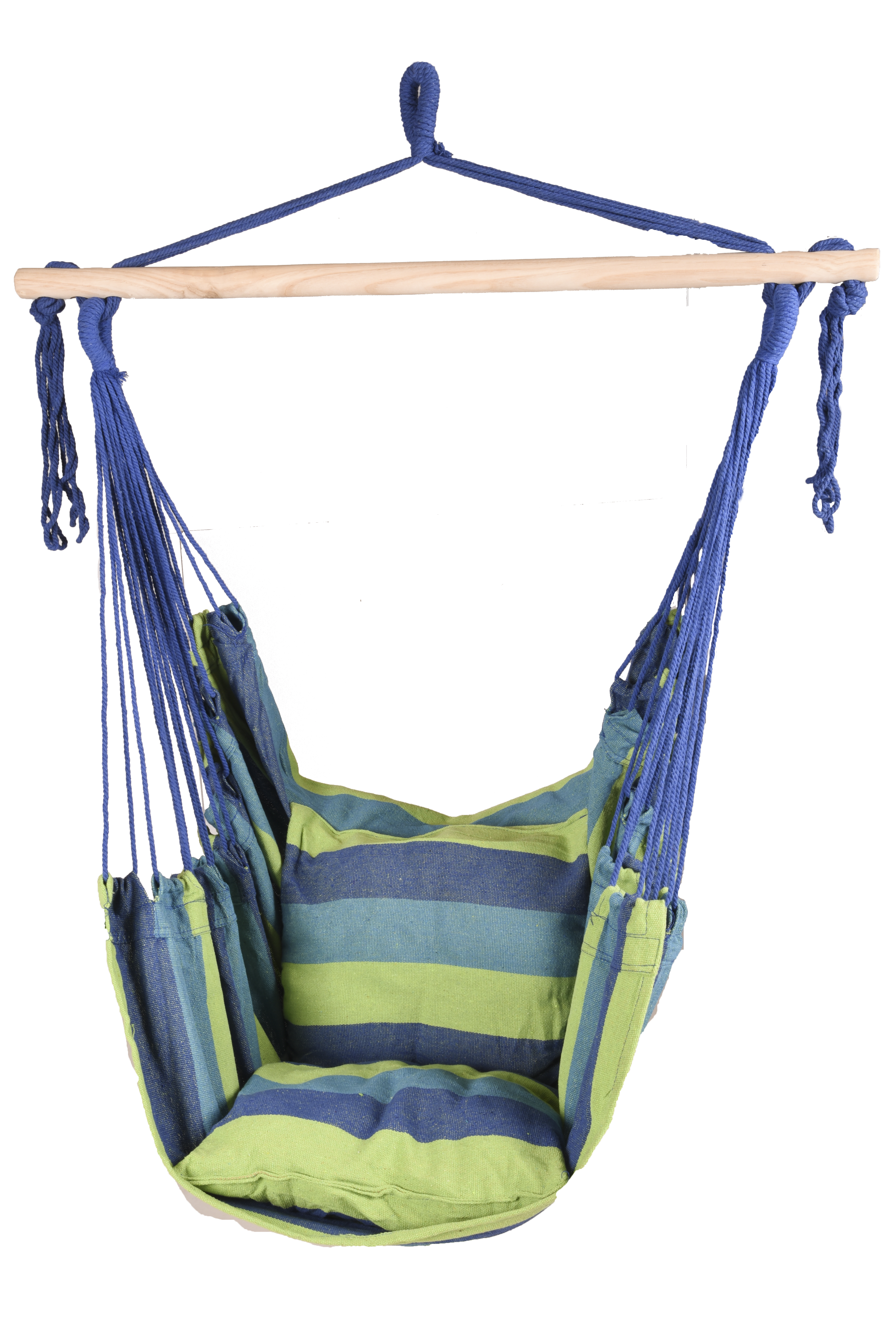 Der TOBAGO Hängesessel ist auch optisch ansprechend und verleiht Ihrem Außenbereich eine moderne und ruhige Ausstrahlung. Die grünen und blauen Farbtöne des Baumwoll-Polyester-Mixes schaffen eine harmonische und beruhigende Atmosphäre, die Ihnen dabei hilft, sich zu entspannen und Ihre Zeit im Freien zu genießen.