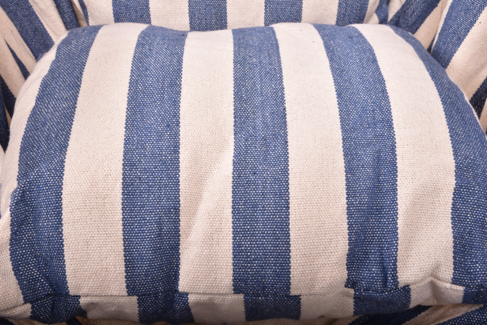 Unser Hängesessel TOBAGO ist die perfekte Ergänzung für Ihr Zuhause, um entspannte Momente im Freien oder im Innenbereich zu genießen. Dieser bequeme Hängesessel besteht aus hochwertiger Scheinkastanie und ist mit einem blau-weißen Polyestergeflecht umhüllt. Das Sitzkissen ist aus Baumwolle gefertigt und sorgt für zusätzlichen Komfort.