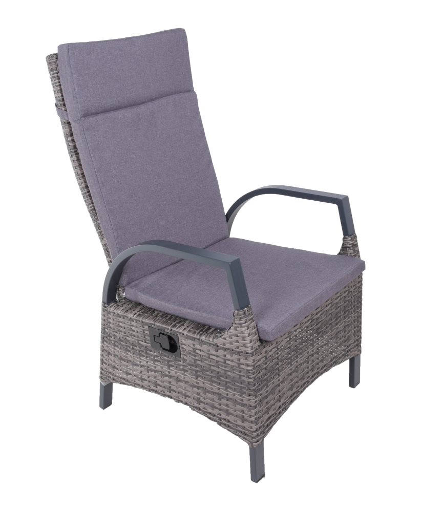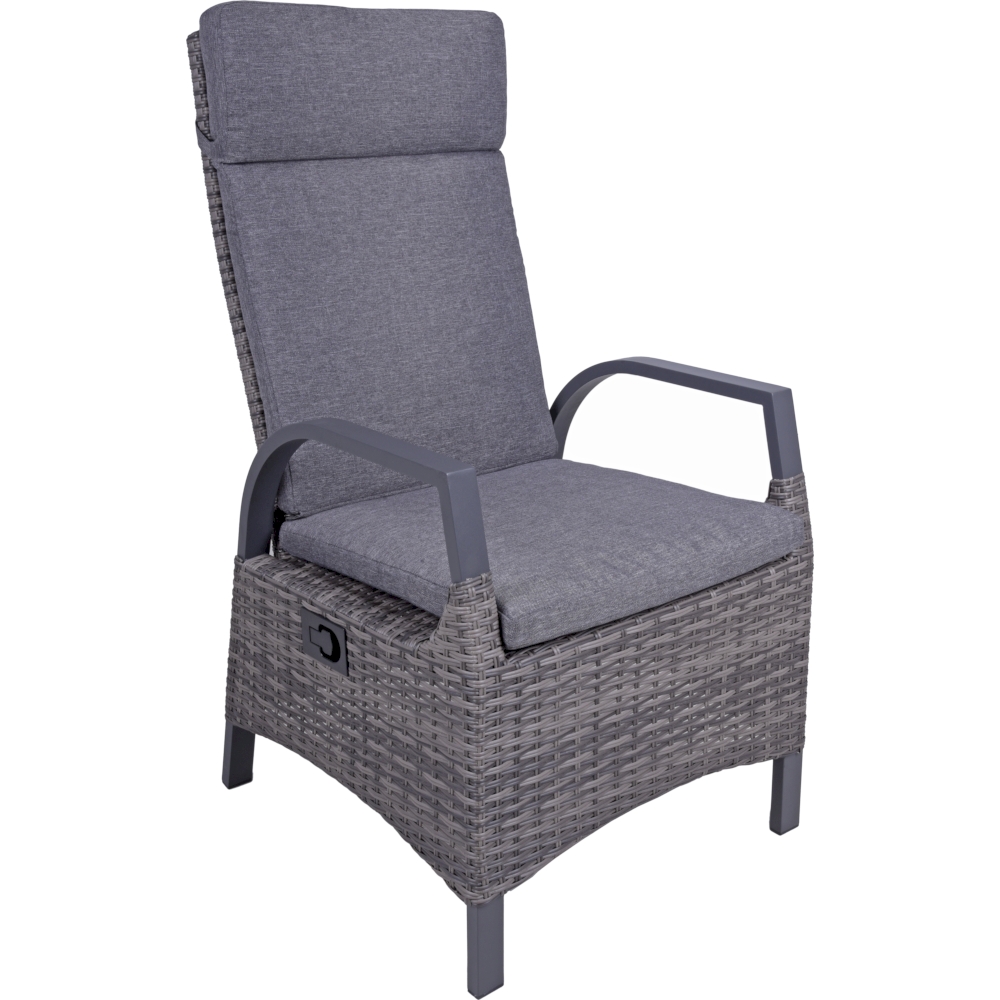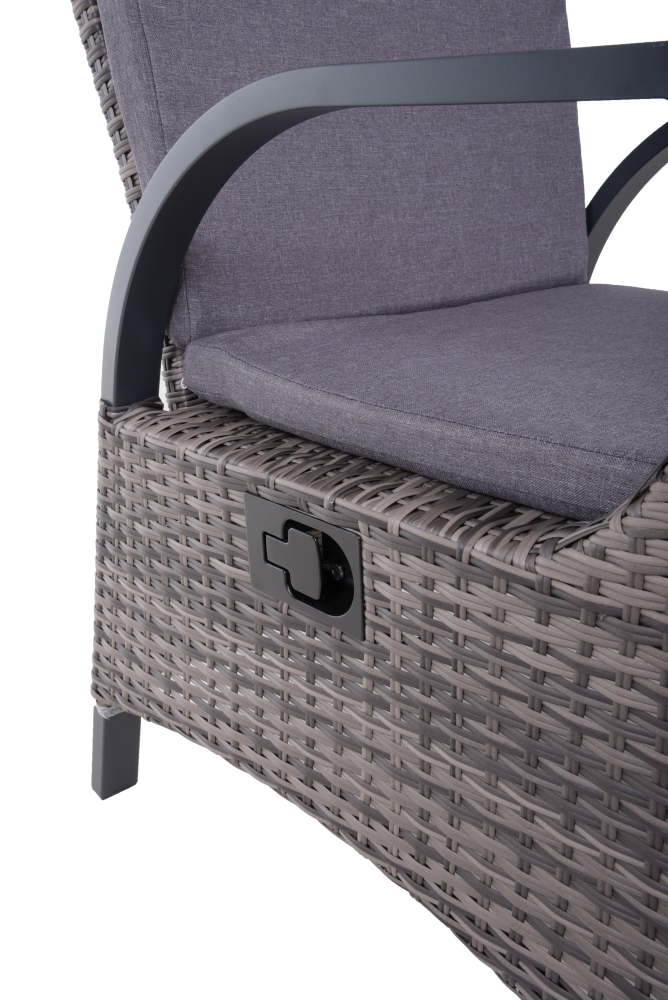 Hergestellt aus hochwertigem anthrazitfarbenem Aluminium und grauem Kunststoffgeflecht, vereint er modernes Design mit Langlebigkeit.