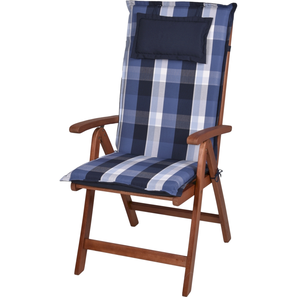Die Hochlehner-Auflage HEMSBY (Modell 90669-100) ist die perfekte Wahl, um Ihren Gartenstuhl mit hoher Lehne in ein bequemes und stilvolles Sitzmöbel zu verwandeln. Hergestellt aus hochwertigem Polyester in den eleganten Farben Dunkelblau, Blau und Weiß verleiht diese Auflage Ihrem Outdoor-Sitzbereich eine zeitlose Eleganz.