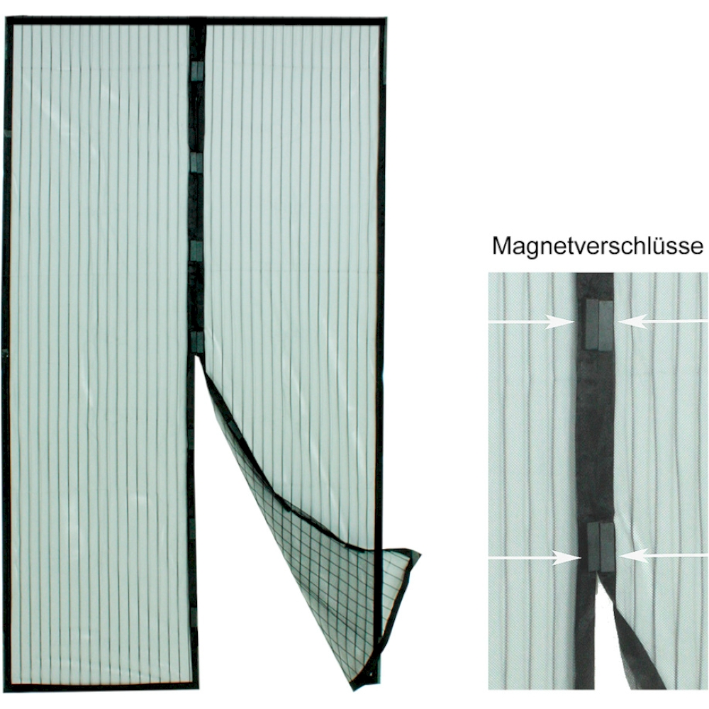Der Insektenschutzvorhang aus schwarzem Polyester ist eine praktische Lösung, um Insekten und Mücken aus Ihrem Wohnbereich fernzuhalten. Er ist mit Magnetverschlüssen ausgestattet, die es einfach machen, die beiden Seitenteile zu öffnen und wieder zu verschließen.
