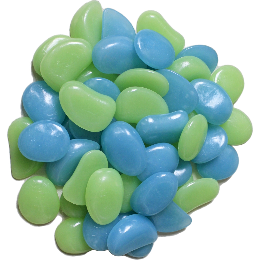 Unsere Leucht-Kieselsteine sind eine faszinierende und dekorative Möglichkeit, Ihre Gartenwege, Blumenbeete oder Aquariumlandschaften auf besondere Weise zu gestalten. Dieses Set enthält insgesamt 50 Kieselsteine, darunter 25 in leuchtendem Blau und 25 in erfrischendem Grün. Die Kieselsteine bestehen aus hochwertigem Polystyrol und sind mit Leuchtpulver in den Farben Grün und Blau angereichert.