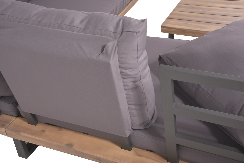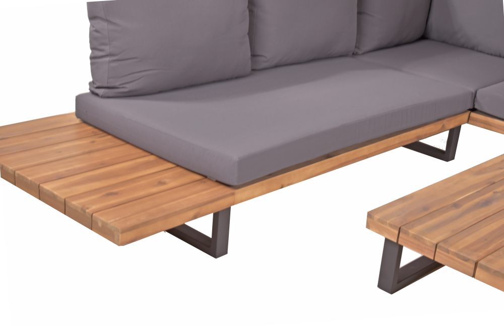Da es sich bei Akazienholz um ein Naturprodukt handelt, kann es zu Astlöchern, leichten Trockenrissen oder verschiedenen Farbausschmückungen kommen, welche der Lounge-Gruppe einen natürlichen und zeitlosen Look verleiht.