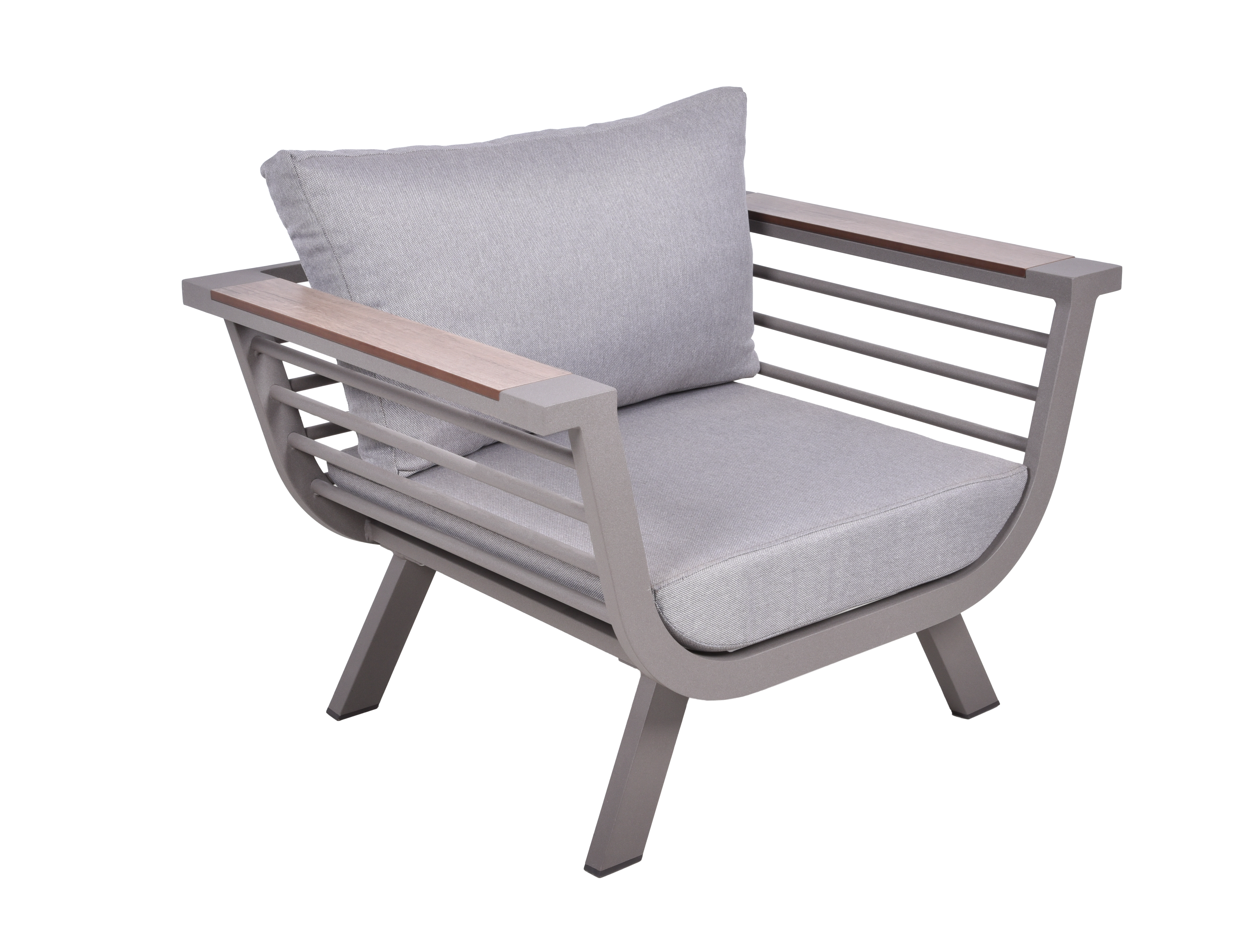 Die Möbel sind mit weichen Kissen und Auflagen in der Farbe Taupe ausgestattet, die nicht nur für zusätzlichen Komfort sorgen, sondern auch einen ansprechenden Kontrast zu dem Aluminiumrahmen bilden. Die fünf Kissen und drei Auflagen sind aus hochwertigem Polyester gefertigt, das nicht nur bequem, sondern auch strapazierfähig und wetterbeständig ist.