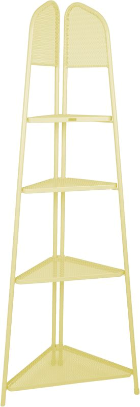 Die Farbe Gelb verleiht diesem Eckregal eine zeitlose Eleganz.
