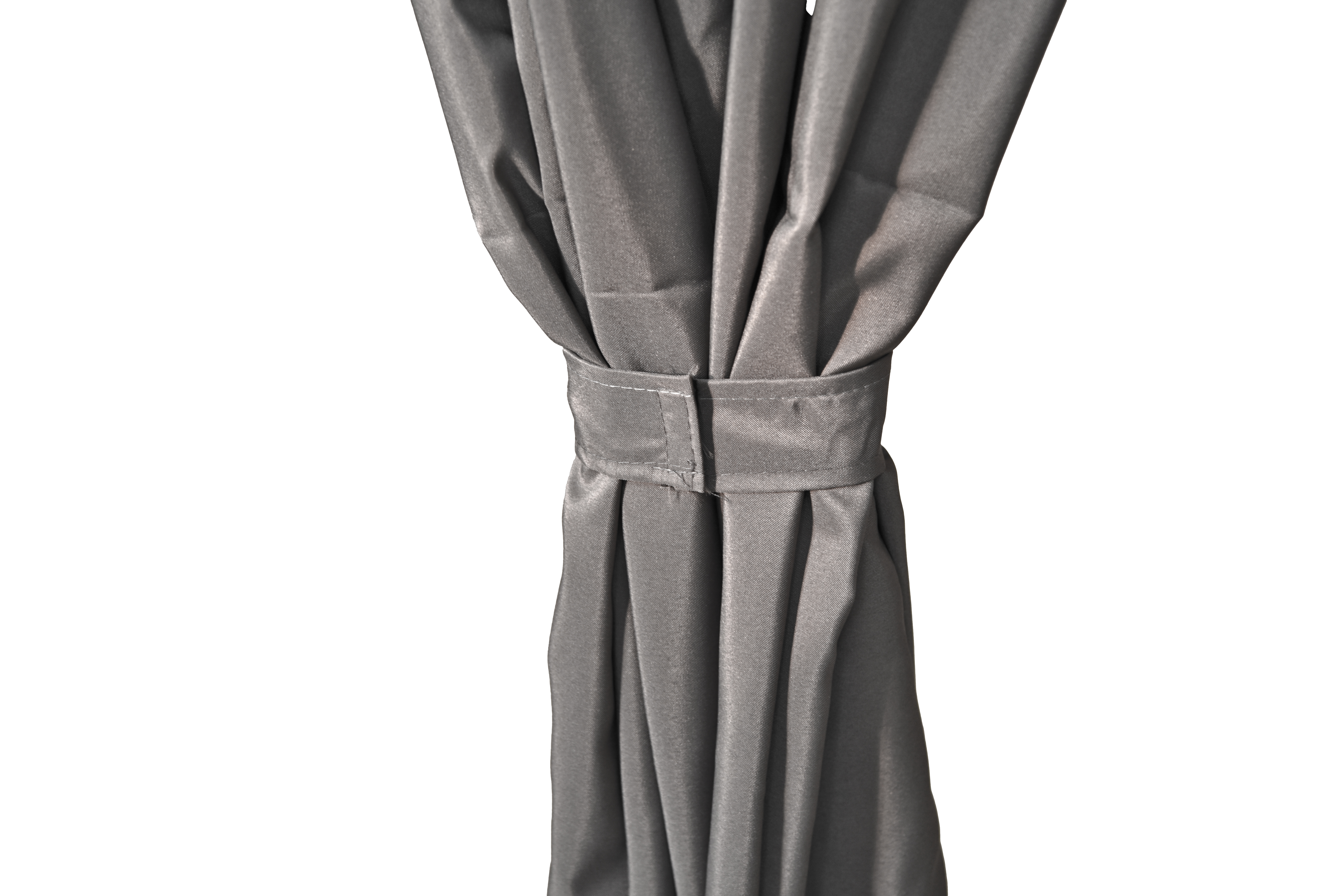Das stabile Gestell aus Stahl sorgt für eine sichere Konstruktion, während das Dach und die Seitenschals aus strapazierfähigem Polyester in elegantem Anthrazitton perfekten Schutz vor Sonne und leichtem Regen bieten.