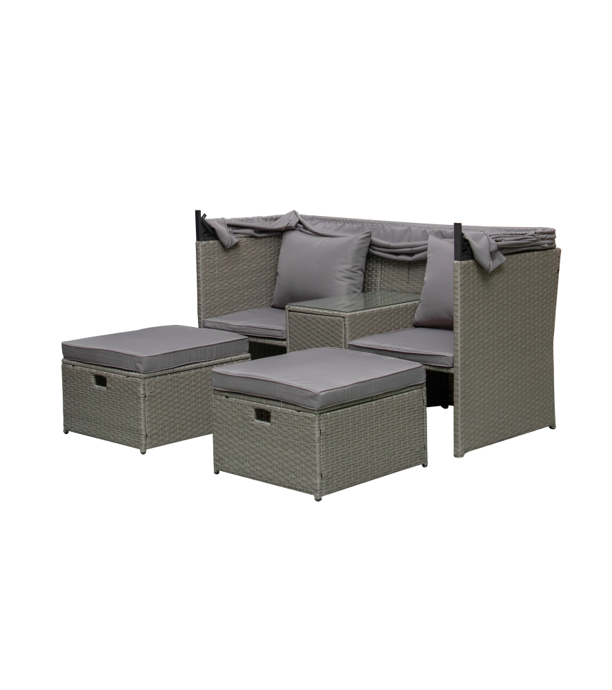 Zubehör: inklusive Hocker, Beistelltisch & Sonnendach