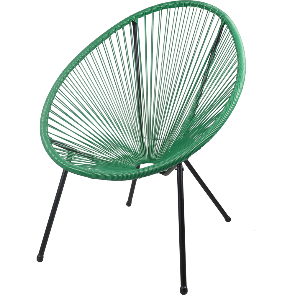 Die Sitzfläche ist mit einer robusten Seilbespannung aus Kunststoff in Farbe grün ausgestattet und bietet ein angenehmes Sitzgefühl.