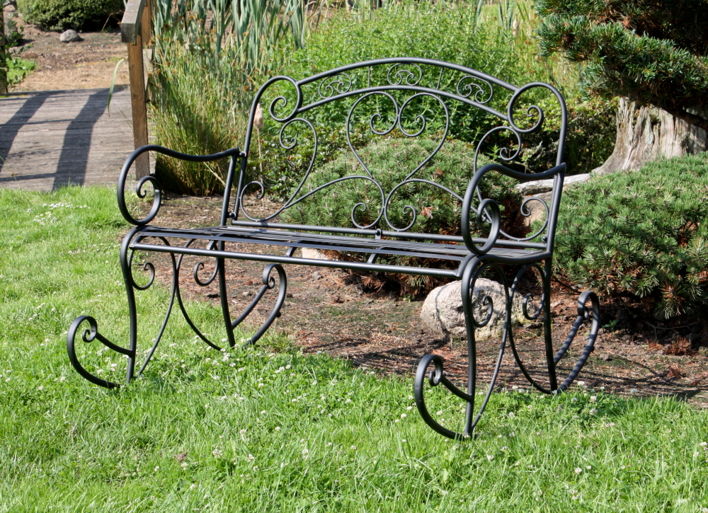 In Kombination mit den Schaukelkufen strahlt die Bank Dares somit ein romantisch-gemütliches Flair aus. aus schwarzem Stahl flach verpackt Seitenteile und Rückenlehne mit Zierornamenten leicht zu montieren