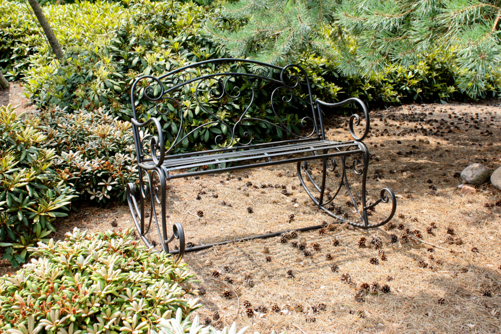 Die Schaukelbank Dares ist aus schwarzem Stahl gefertigt und bietet ein äußerst dekoratives Element für Ihren heimischen Garten.
