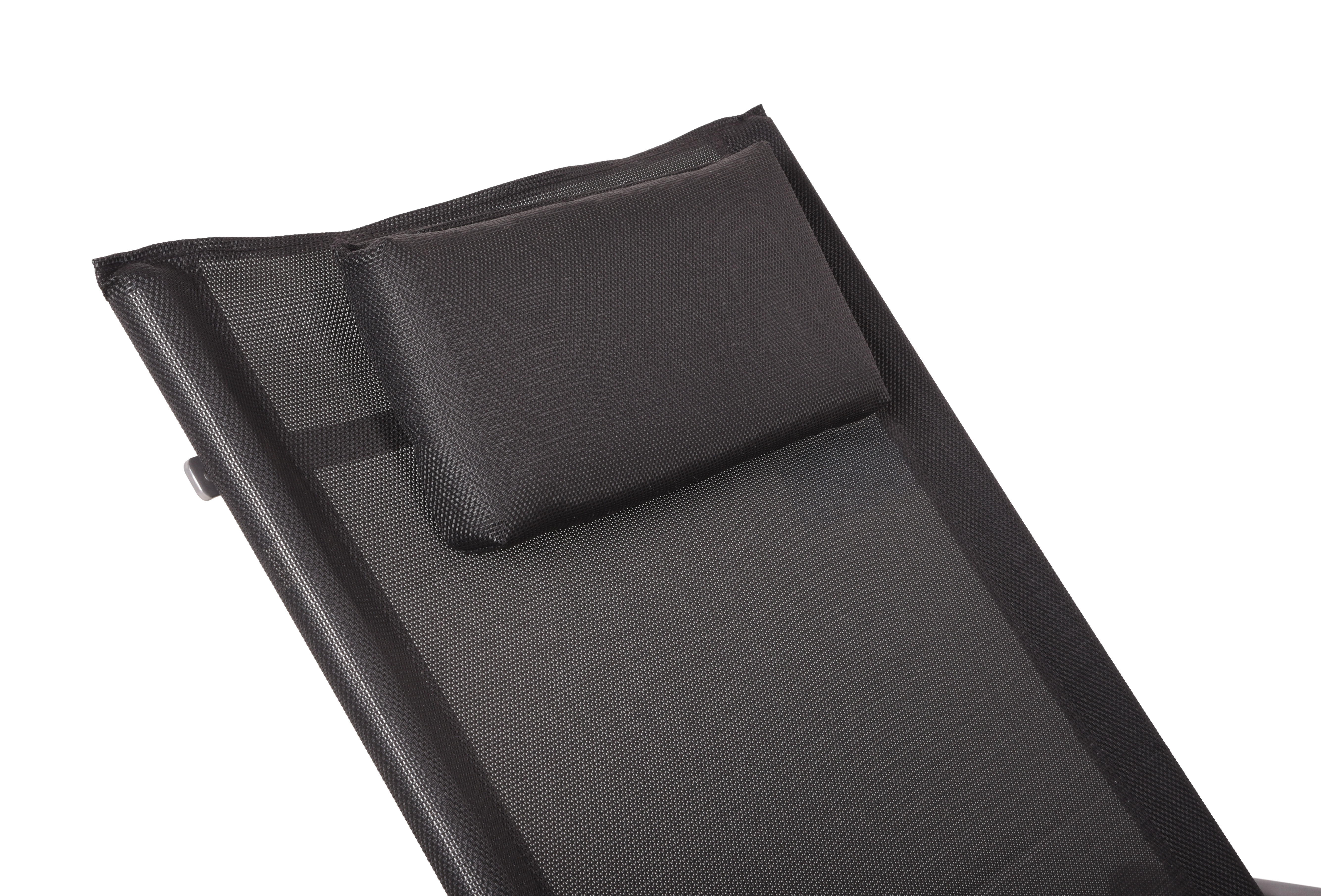 Die Sitzfläche und die Rückenlehne der Schaukelliege sind mit schwarzem Kunststoffgewebe im 2x1-Muster bezogen. Dieses Material ist nicht nur bequem, sondern auch langlebig und wetterbeständig, wodurch die Liege ideal für den Außenbereich geeignet ist.